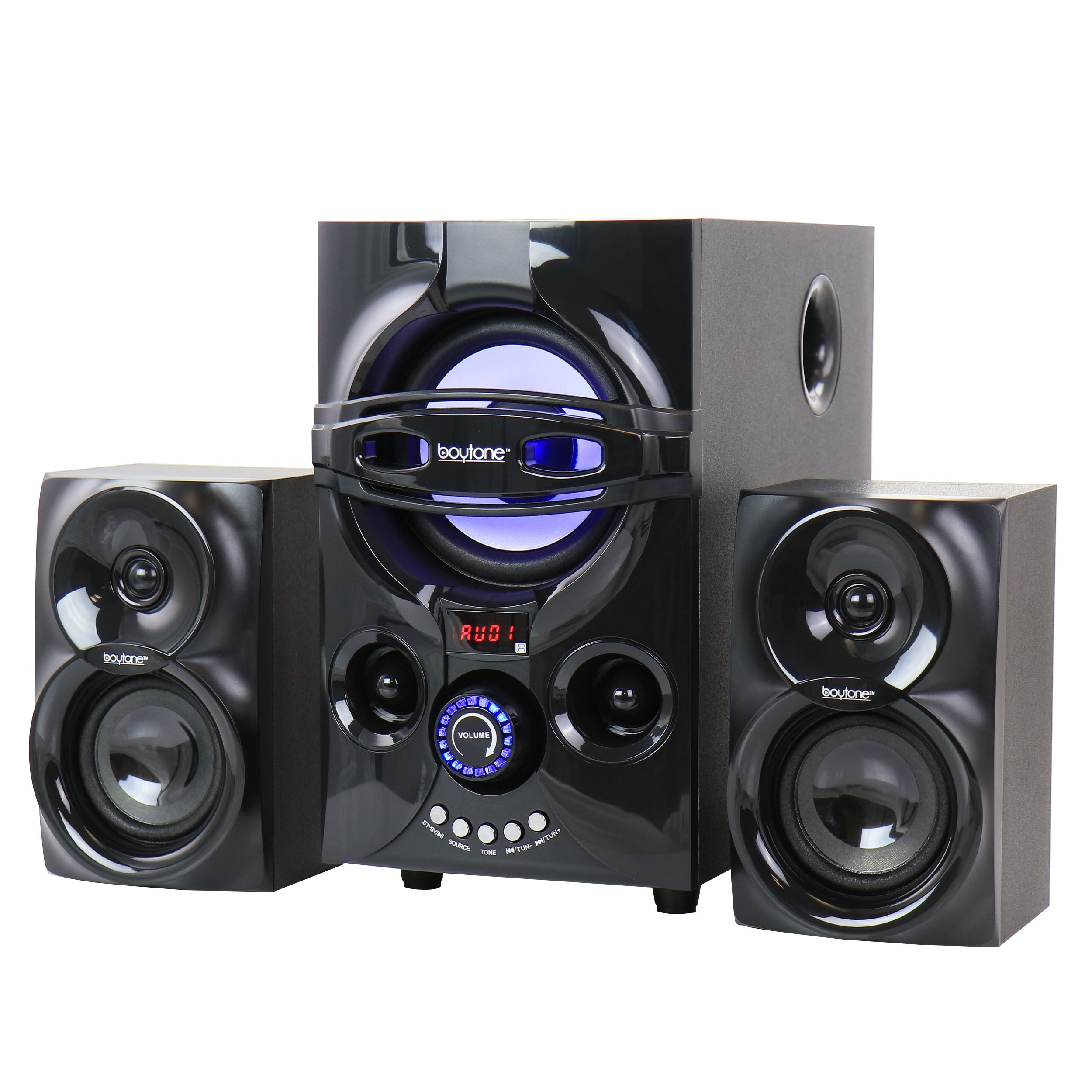 Manufacturer: BOYTONE UPC: 643307991802 Model Number: BT-424F * 50 Watt powerful sound (22+2×14) produces a wide audio spectrum with 5.25 inch sub-woofer, 3″” x 2 full range magnetically shielded * Supports wireless music streaming via new Bluetooth technology, USB/SD/AUX support, full audio spectrum performances, I deal for your favorite entertainment fore Mp3, Mp4, CD/DVD movies and digital playbacks. Black color * Bluetooth, easy connection & works with all Bluetooth-enabled devices; equipped with a 3.5 mm AUX jack for non-Bluetooth devices * FM tuner, main unit Bluetooth wireless, outstanding connection range of up to 33 feet, 2 stereo speakers with a sub-woofer and built-in amplifier * Power source: AC 110V (UL) listed MP3 playback, wireless remote control, digital LED display, RGB light including remote control one year warranty form Boytone USA Weight: 12.00