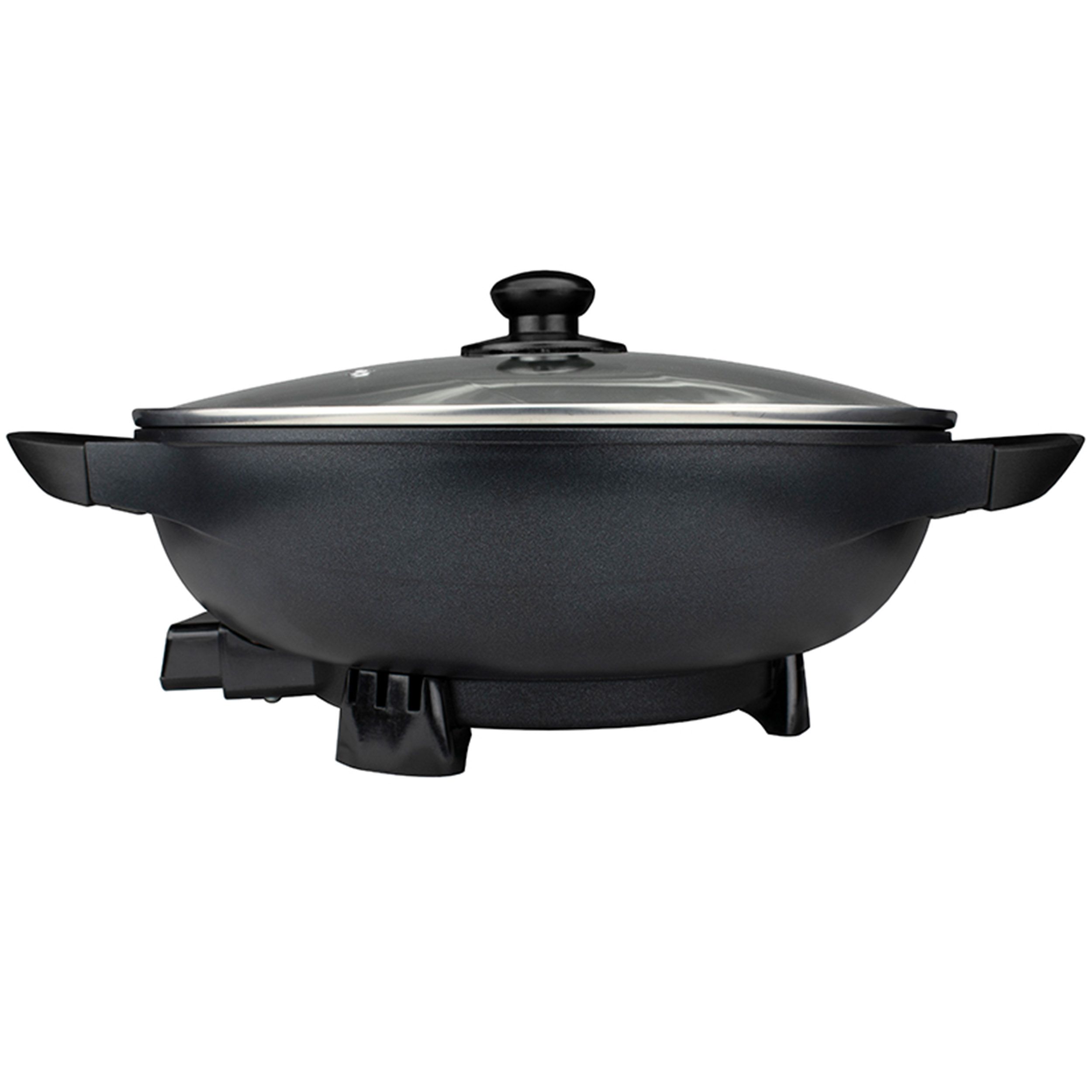 Manufacturer: Brentwood UPC: 812330024379 Model Number: SK-69BK The Brentwood 13in Non-Stick Flat Bottom Electric Wok Skillet has a powerful 1400Watt strength and is perfect for stir fry and more. Featuring an adjustable and removable thermostat, cool touch handles, and an easy to clean non-stick surface. This electric wok has perfect countertop capability and allows you to conveniently cook an all in one meal without having to dirty other dishes. Cool touch handles make it easily portable even when hot and adjustable temperature from 195-450 degrees F allows you to cook a wide range of foods. Weight: 9.00