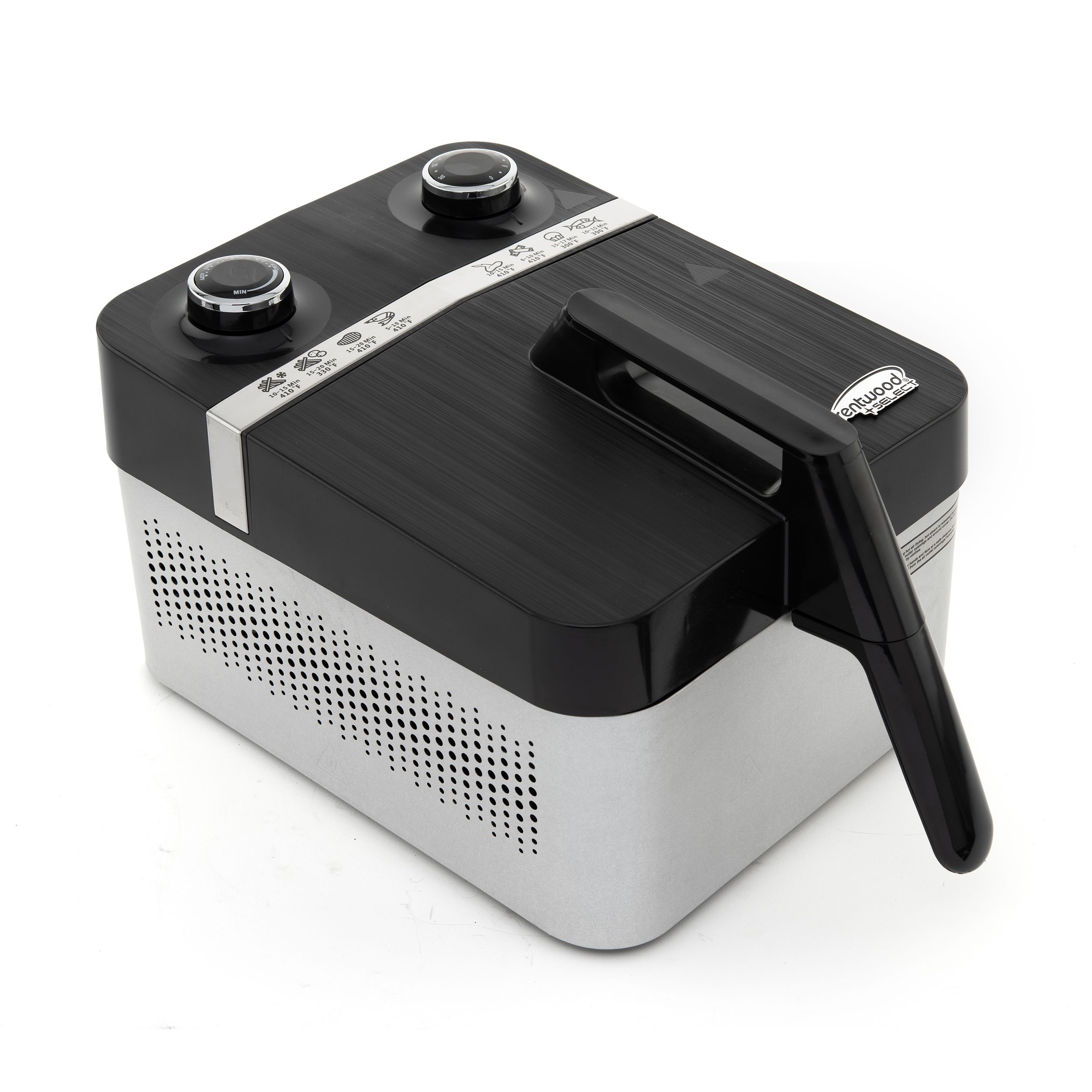 The powerful 1200w Brentwood Select 3.4 Quart Rapid Electric Air Fryer fries quickly and evenly using little to no oil using rapid hot air circulation technology. Make crispy french fries, onion rings, chicken wings, and more. Use the quick temp guide and 30 minute timer with auto shut off for fast, crispy results. Cool touch, removable wire fry basket makes serving simple. Easy to clean non-stick surface.