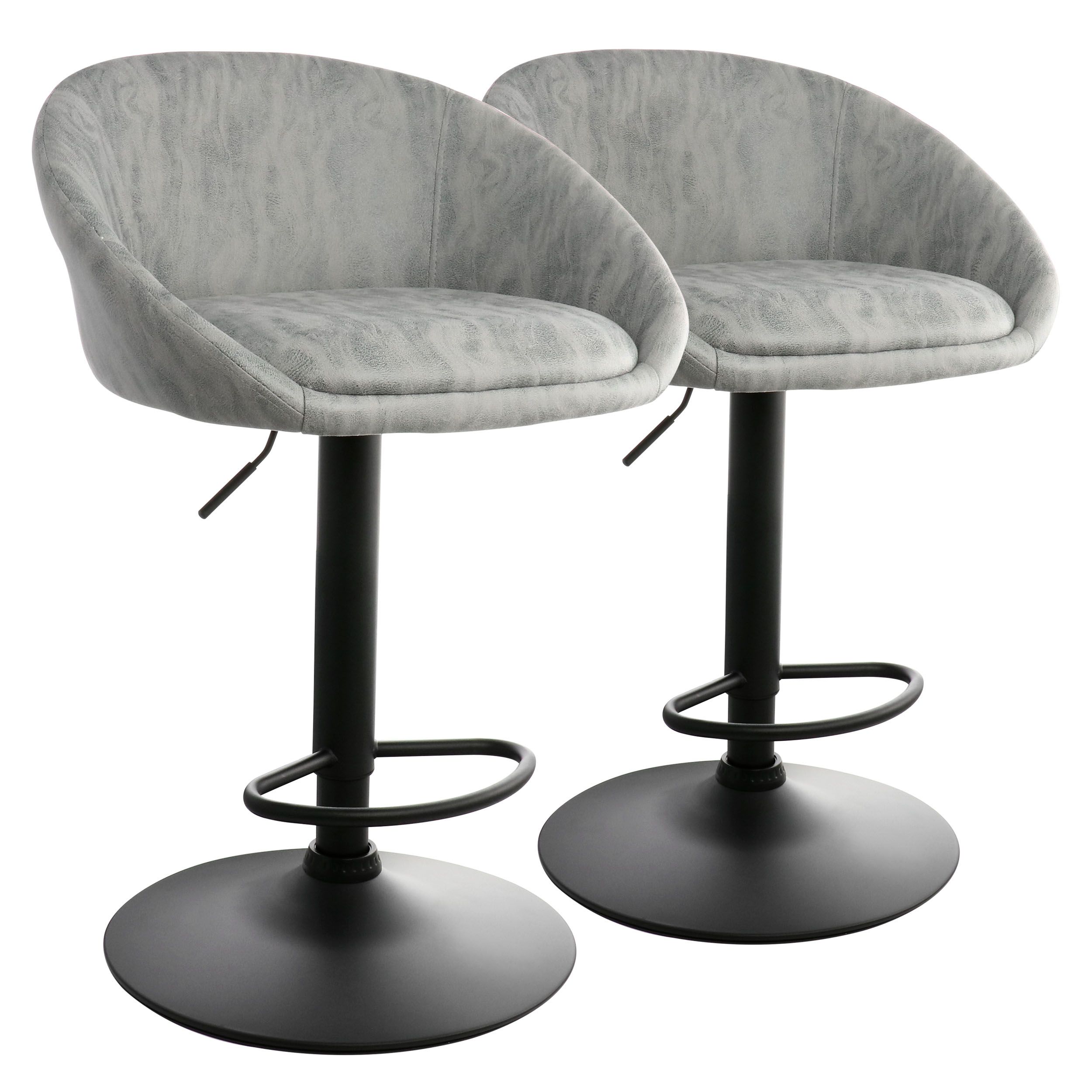 Elama 2 Piece Cloth Adjustable Bar Stool Set in Gray with Black Base