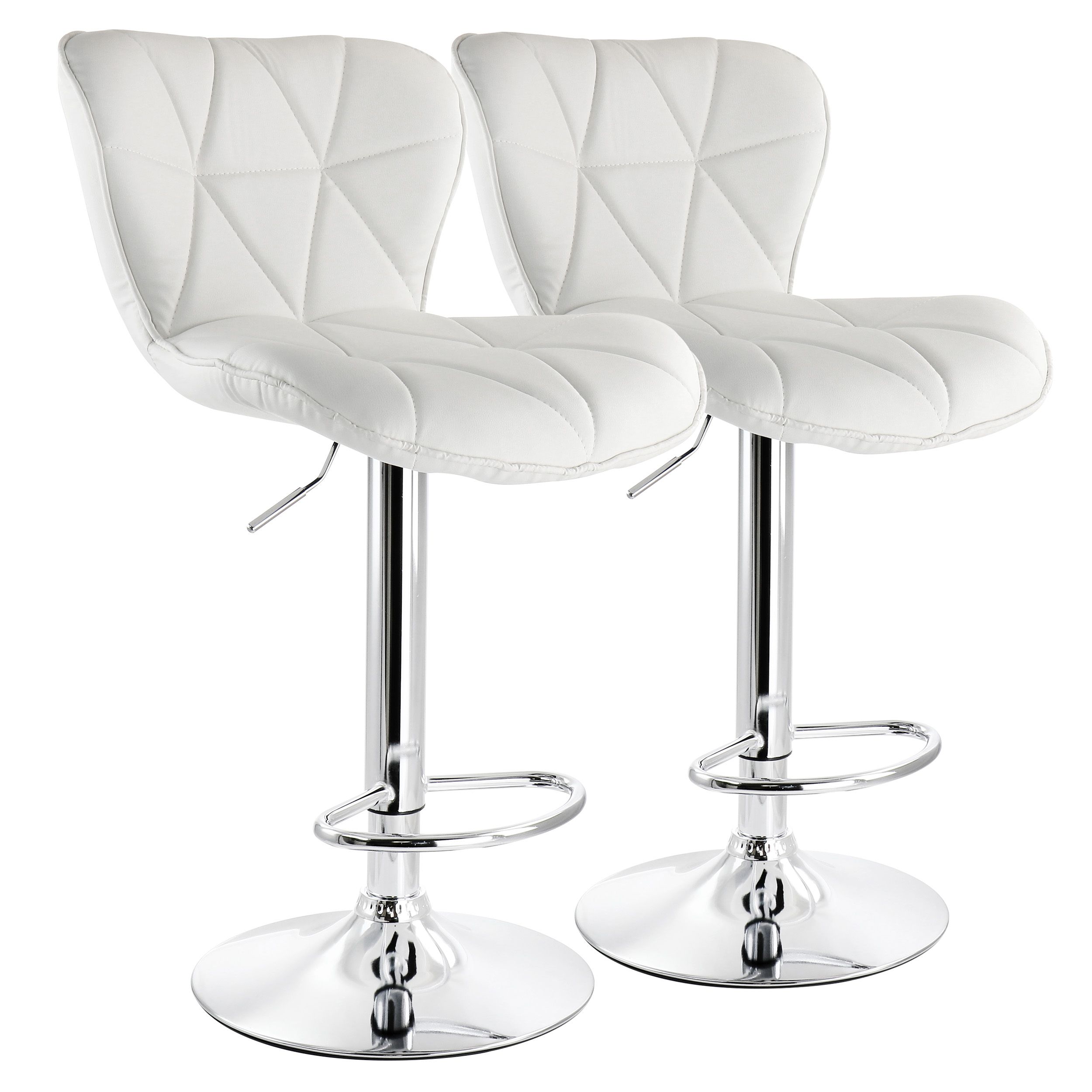 Add a stylish touch to your home bar or kitchen counters with the Elama 2 Piece Tufted Faux Leather Adjustable Bar Stool in Black with Chrome Base. This chair is uniquely shaped for a comfortable fit while you’re seated. Swivel base is perfect for movability and adjustable height allows you to customize these stools to whatever height is most comfortable and convenient for your home counters. No arms allow you to seat the stools next to each other without worrying about lack of space. The Elama adjustable chair is also crafted from quality and sturdy metal for a strong and long-lasting design.
