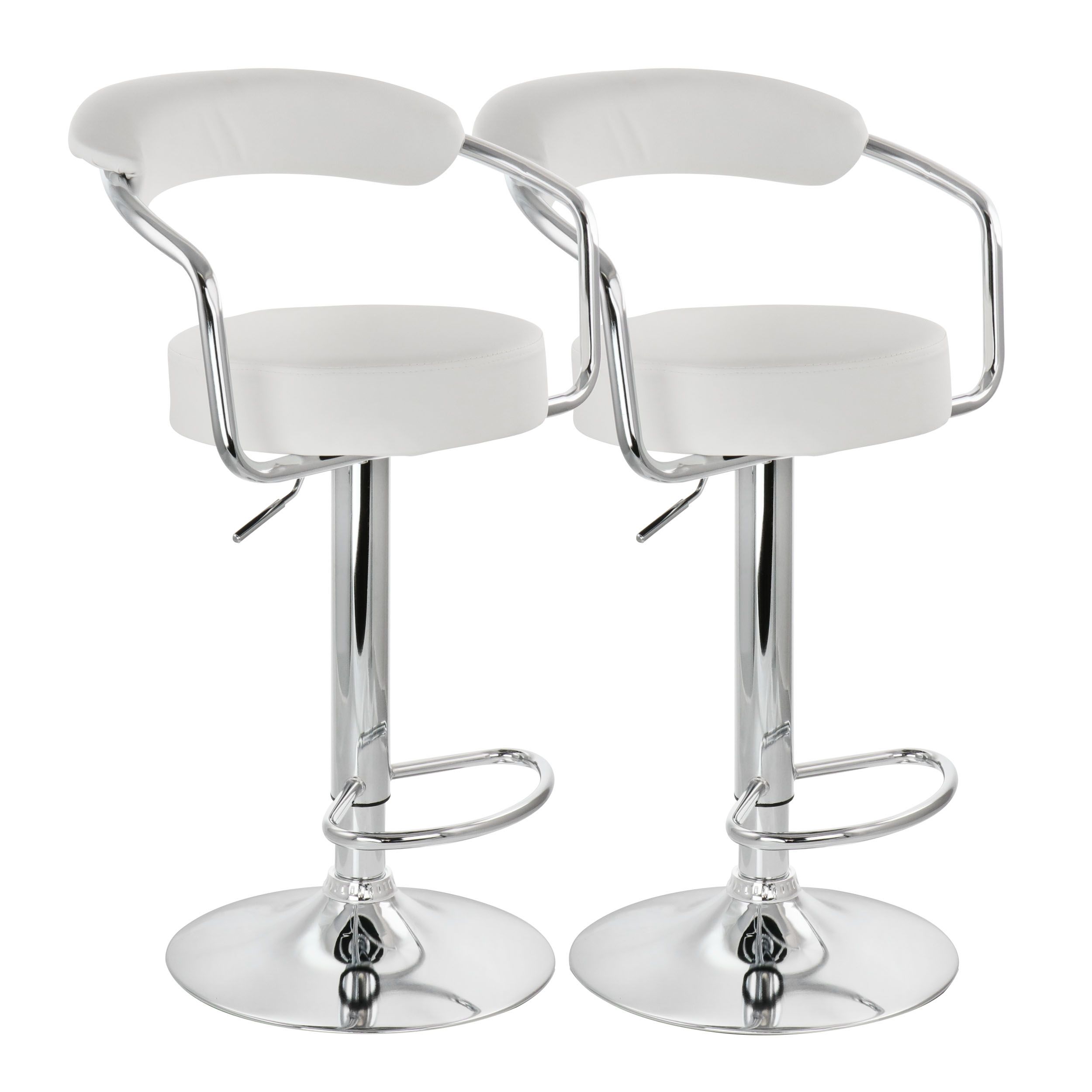 Manufacturer: ELAMA UPC: 840191200151 Model Number: ELM-709-WHT Add a stylish touch to your home bar or kitchen counters with the Elama 2 Piece Faux Leather Retro Adjustable Bar Stool in White with Chrome Handles and Base. This set of chairs is uniquely retro shaped for a fun addition to any room. Swivel base is perfect for movability and adjustable height allows you to customize these stools to whatever height is most comfortable and convenient for your home counters. These adjustable chairs are crafted from quality metal and faux leather for a strong and long lasting design. Weight: 41.00
