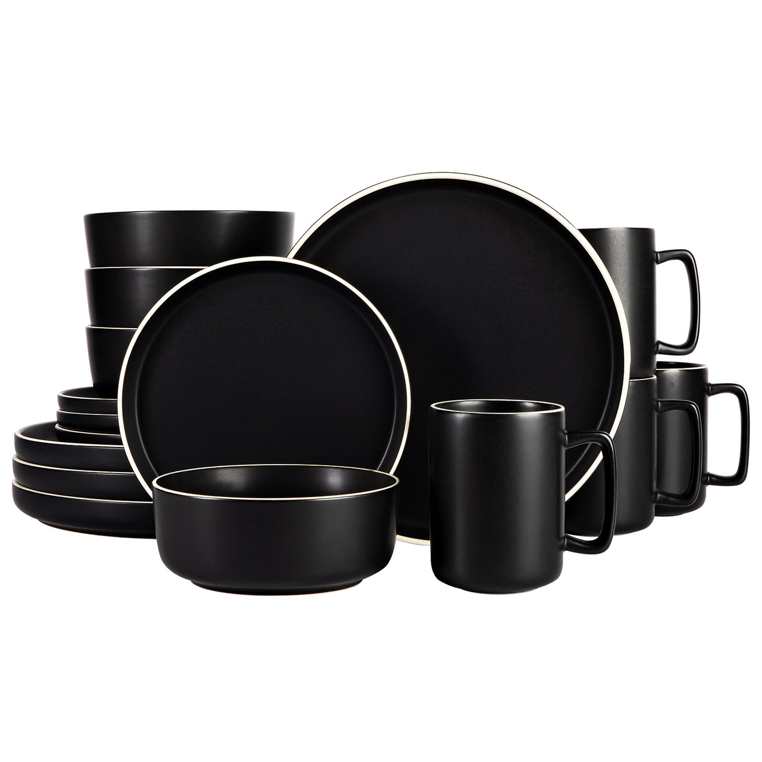 Gap Home 16 Piece Round Stoneware Dinnerware Set in Solid Matte Black
