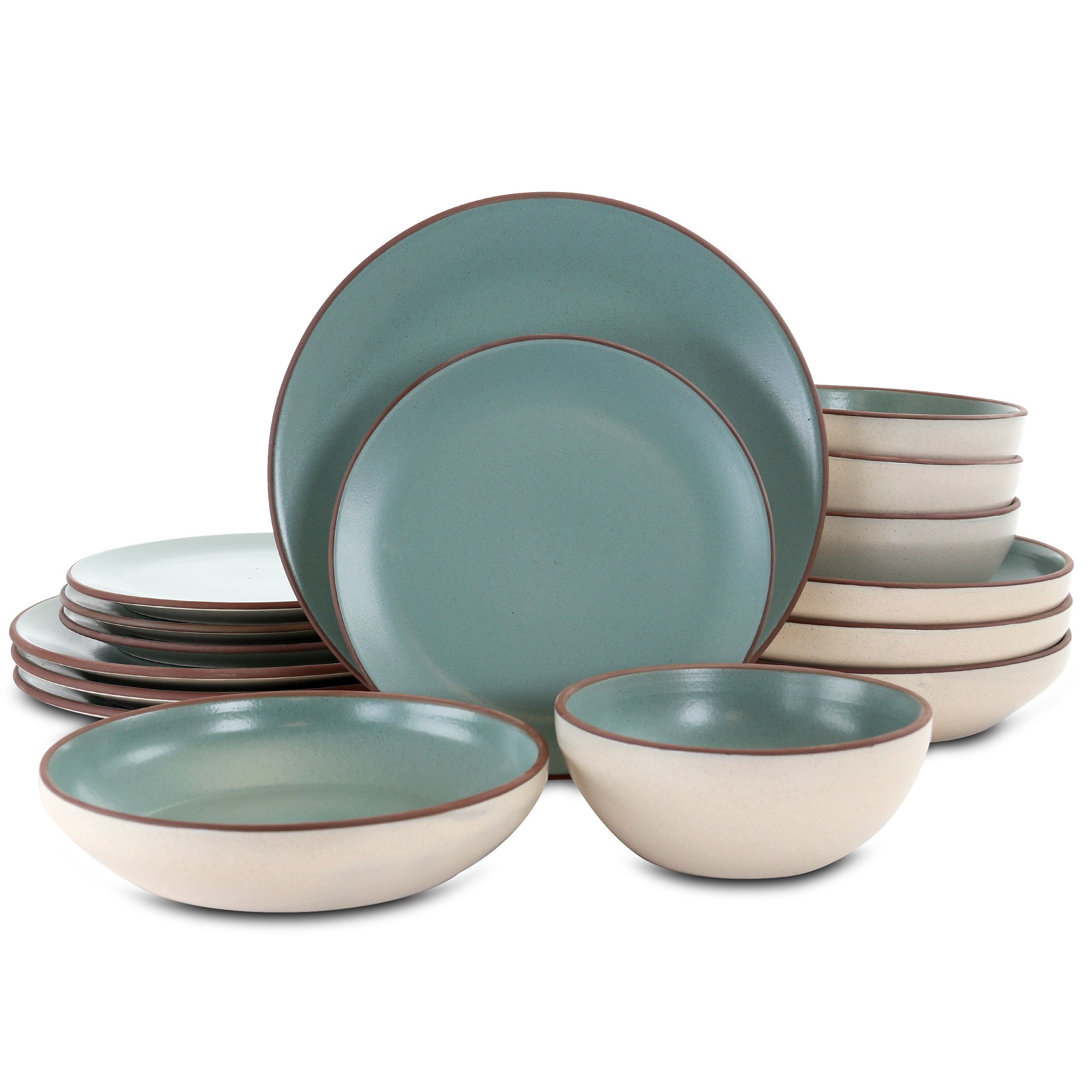 The Gibson Elite Contempo Classic 16 Piece Round Terracotta Dinnerware Set in Green will add the perfect modern touch to any home kitchen. Crafted from stoneware and finished with a reactive glaze, this dish collection is designed to last and maintain its quality. Every piece is also dishwasher and microwave safe for easy cleaning and everyday use!
