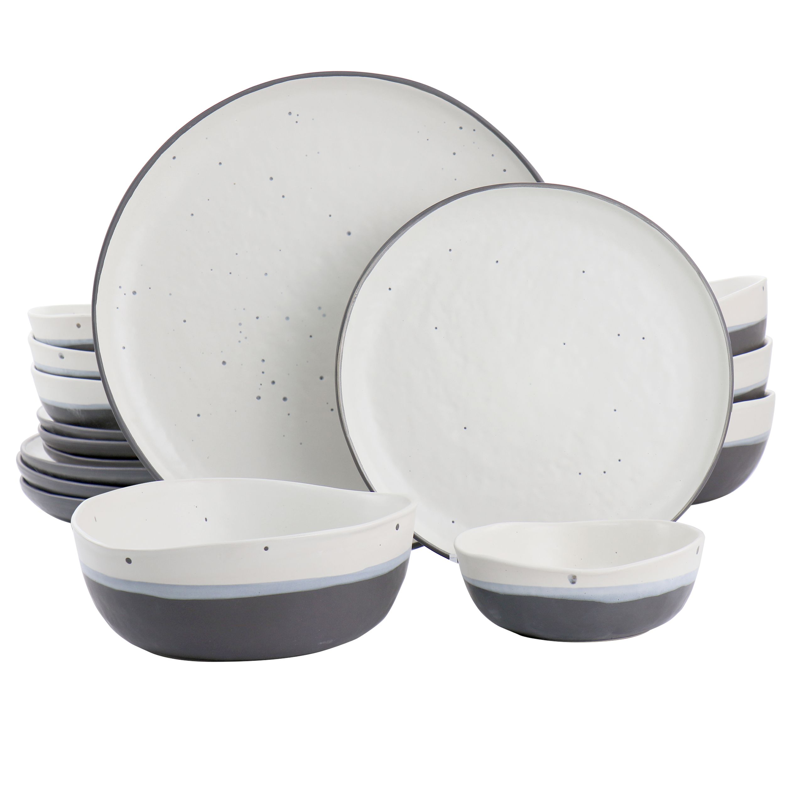 Manufacturer: Gibson Elite UPC: 085081304049 Model Number: 107223.16 The Rhinebeck dinnerware set brings sophisticated style, character and richness to the table. It blends seamlessly with a wide array of colors and motifs, making it perfect for any home setting. This original speckled set feature unique shapes and color schemes that will add charm to your tablescape. The plates are classy yet unique to any table setting. Dishes are microwave safe for quick reheating and dishwasher safe for easy cleaning. Weight: 22.00