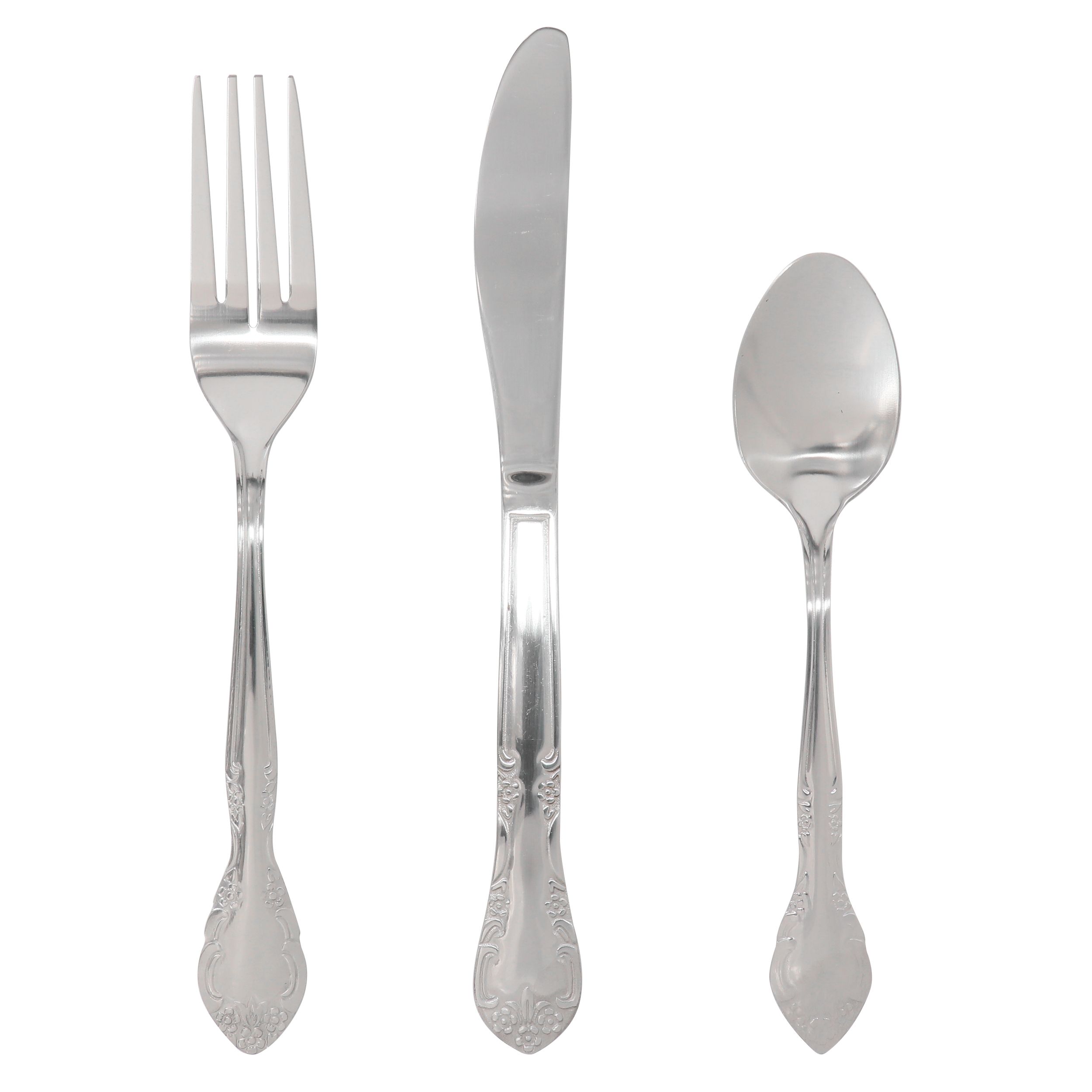 The Gibson Everyday Fairmont 3 Piece Stainless Steel Flatware Set brings class to any home setting. Each piece features an ornate stainless steel handle that is sure to last you through countless dinners. This 3 piece set is perfect for starting a new collection or makes a great addition. Durably made to be dishwasher safe for fast and easy cleaning.