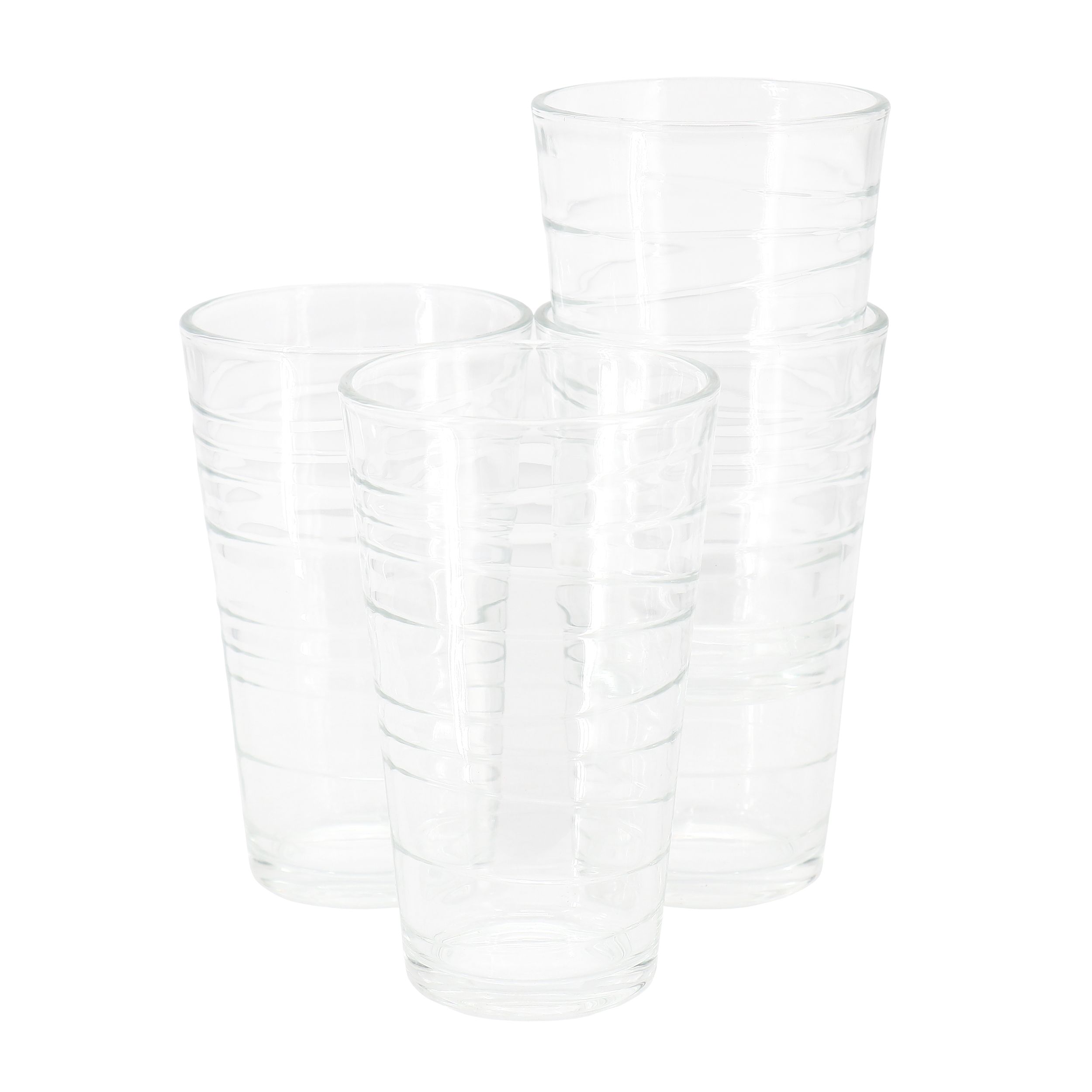 Manufacturer: Gibson Home UPC: 085081625151 Model Number: 141406.04 Add some modern style to your table and parties with this Gibson Home 4 Piece 16 Ounce Swirl Glass Tumbler Set. In this set, you’ll receive 4 glass tumblers. Each glass has a gorgeous swirling ring embossed pattern giving them a simple yet classy look and feel. The durable glass construction is dishwasher safe making for easy clean up. In this drinkware, enjoy an ice cold glass of water, lemonade, and iced tea, or serve your favorite cocktails and mixed drinks. Upgrade your drinkware today with this beautiful set! Weight: 5.00