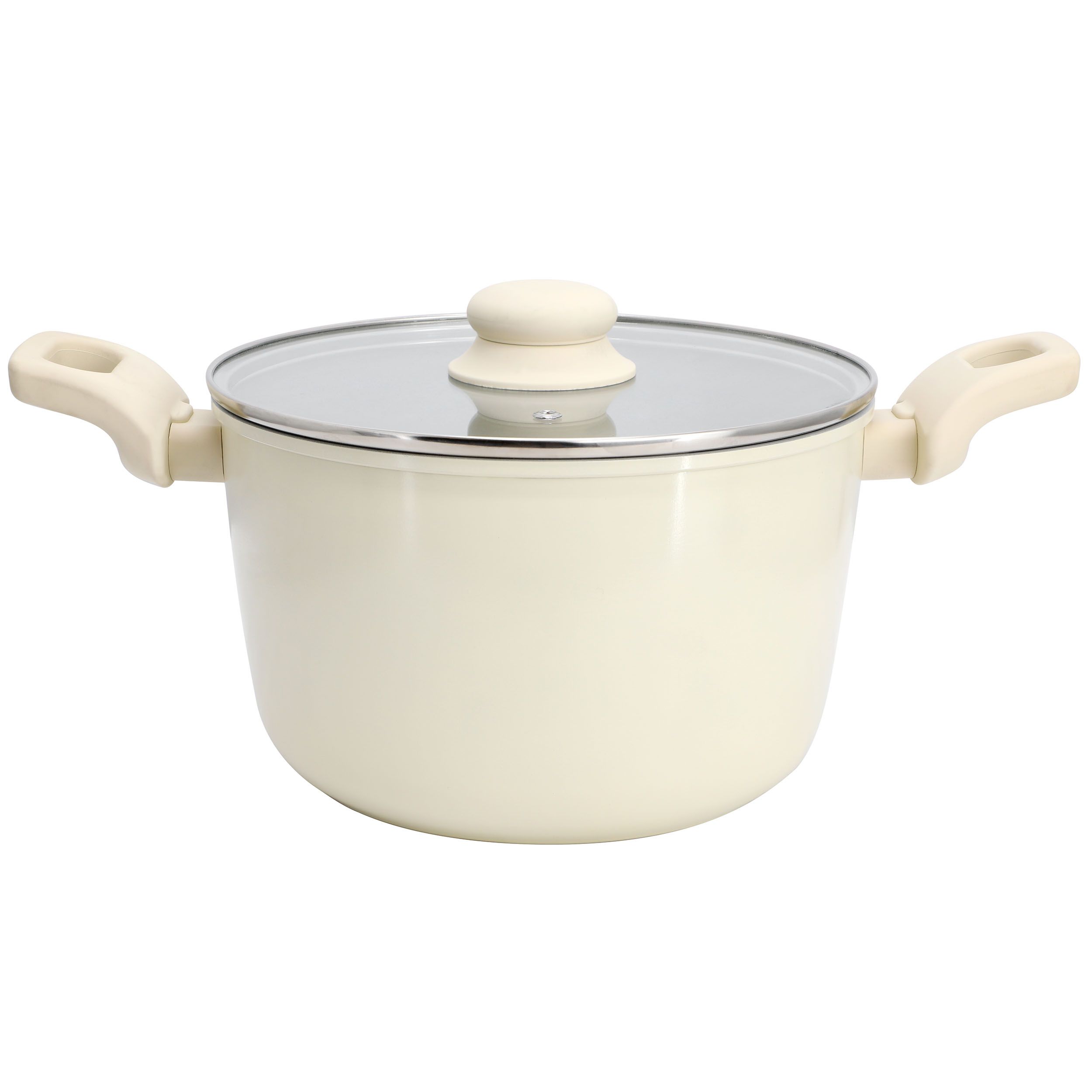 Gibson Home Barnsdall 5 Quart Ceramic Nonstick Aluminum Stock Pot with Lid in Cream