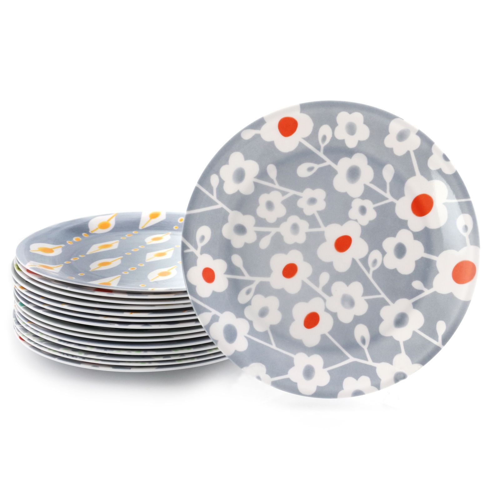 Manufacturer: Gibson Home UPC: 085081474131 Model Number: 124232.04 The Gibson Home Baypointe 16 Piece 9 Inch Melamine Dessert Plates in Assorted Designs are the perfect size for everyday use and special occasions. Made of sturdy and durable melamine, these dishes are ideal for outdoor use. This collection comes with four assorted fun and summery designs! Weight: 6.00