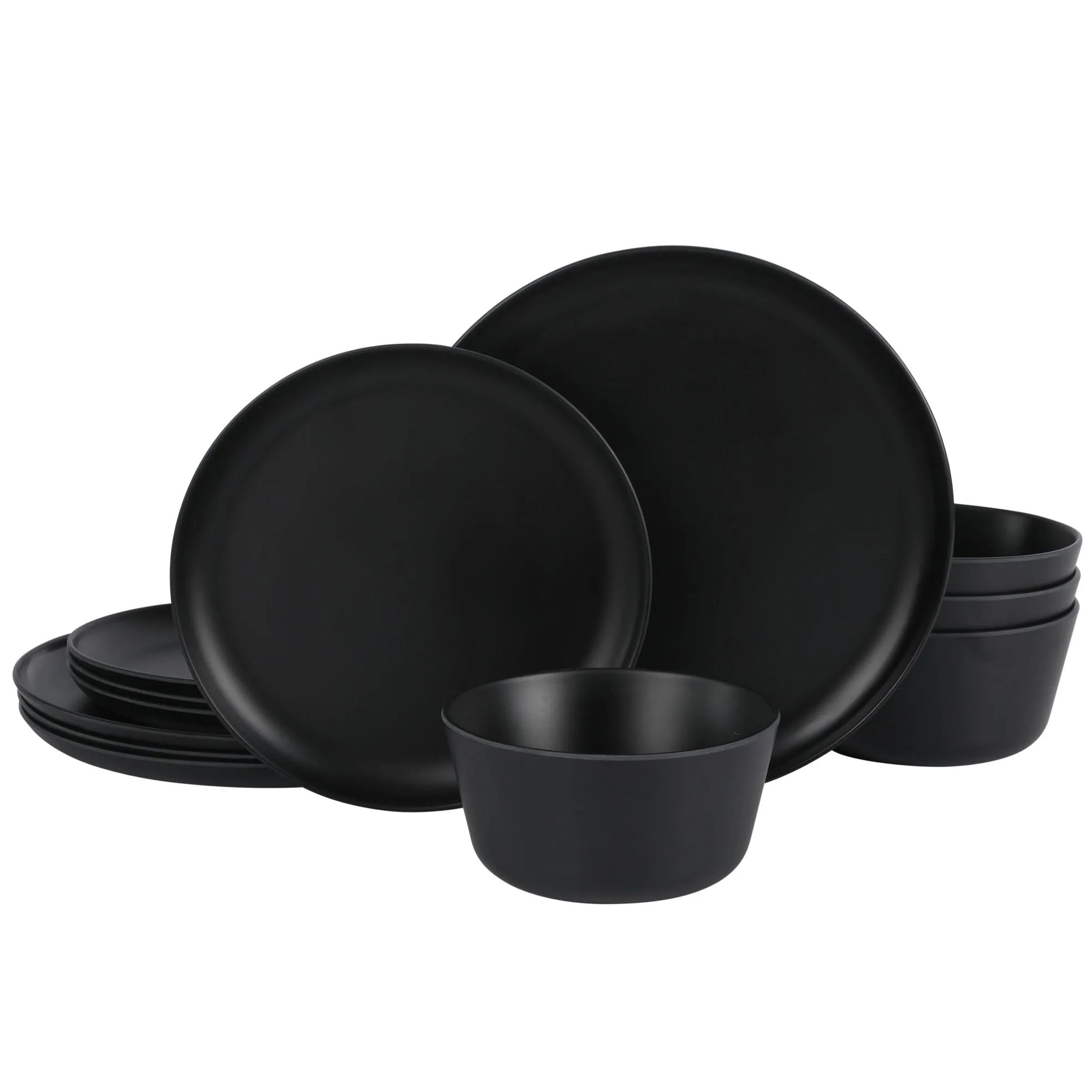 Gibson Home Fairhope 12 Piece Melamine Round Dinnerware Set in Matte Black