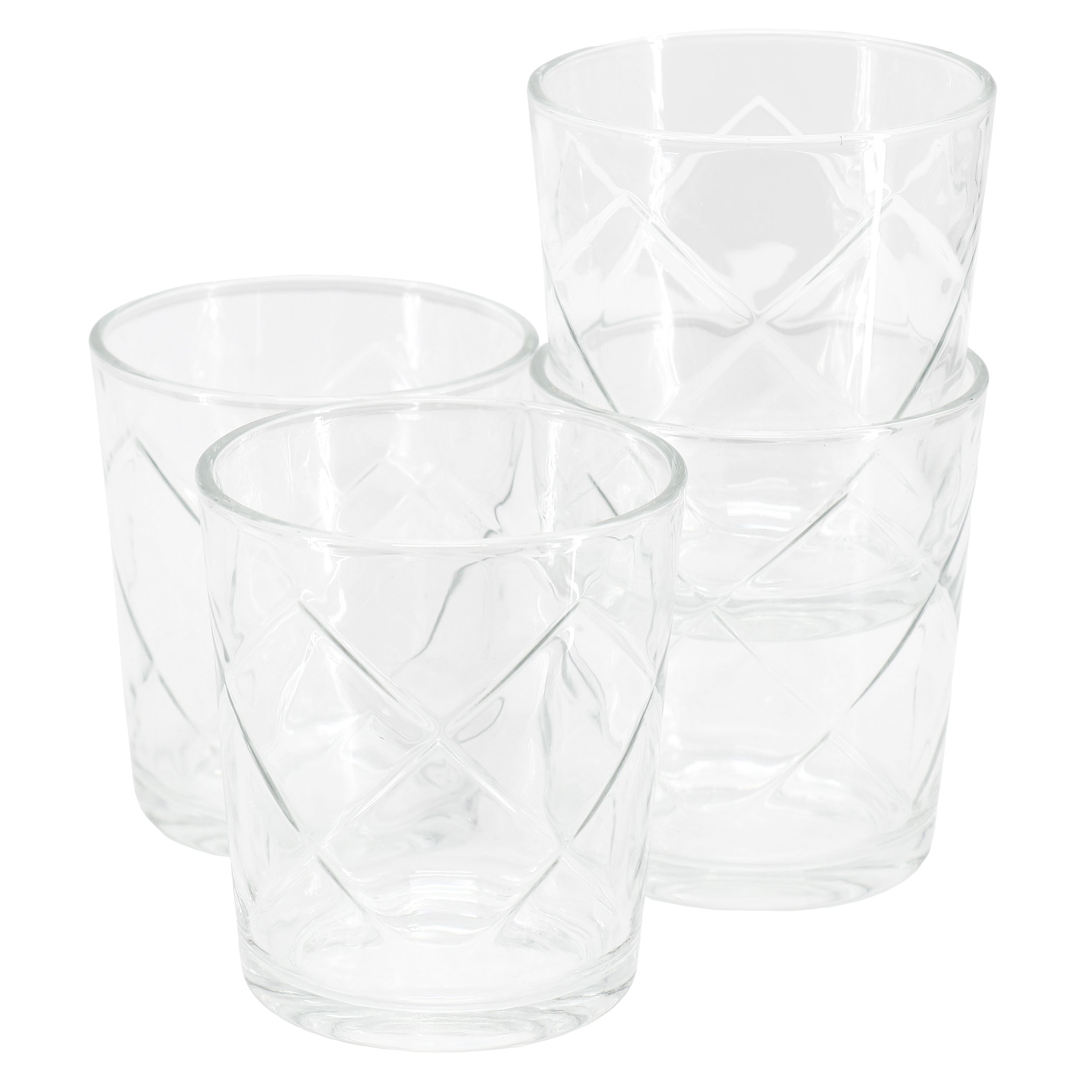 Manufacturer: Gibson Home UPC: 085081625113 Model Number: 141403.04 Serve the perfect drink with the stunning styling of Gibson Home Lattice 4 Piece Double Old-Fashioned Glass Set. Each double old fashion glass features an embossed lattice pattern with in their containers. The clear glass body is well made and dishwasher safe for better quality of life. Enjoy a nice evening with a glass of whiskey, orange juice in the morning, or party with friends and cocktails! Weight: 5.00