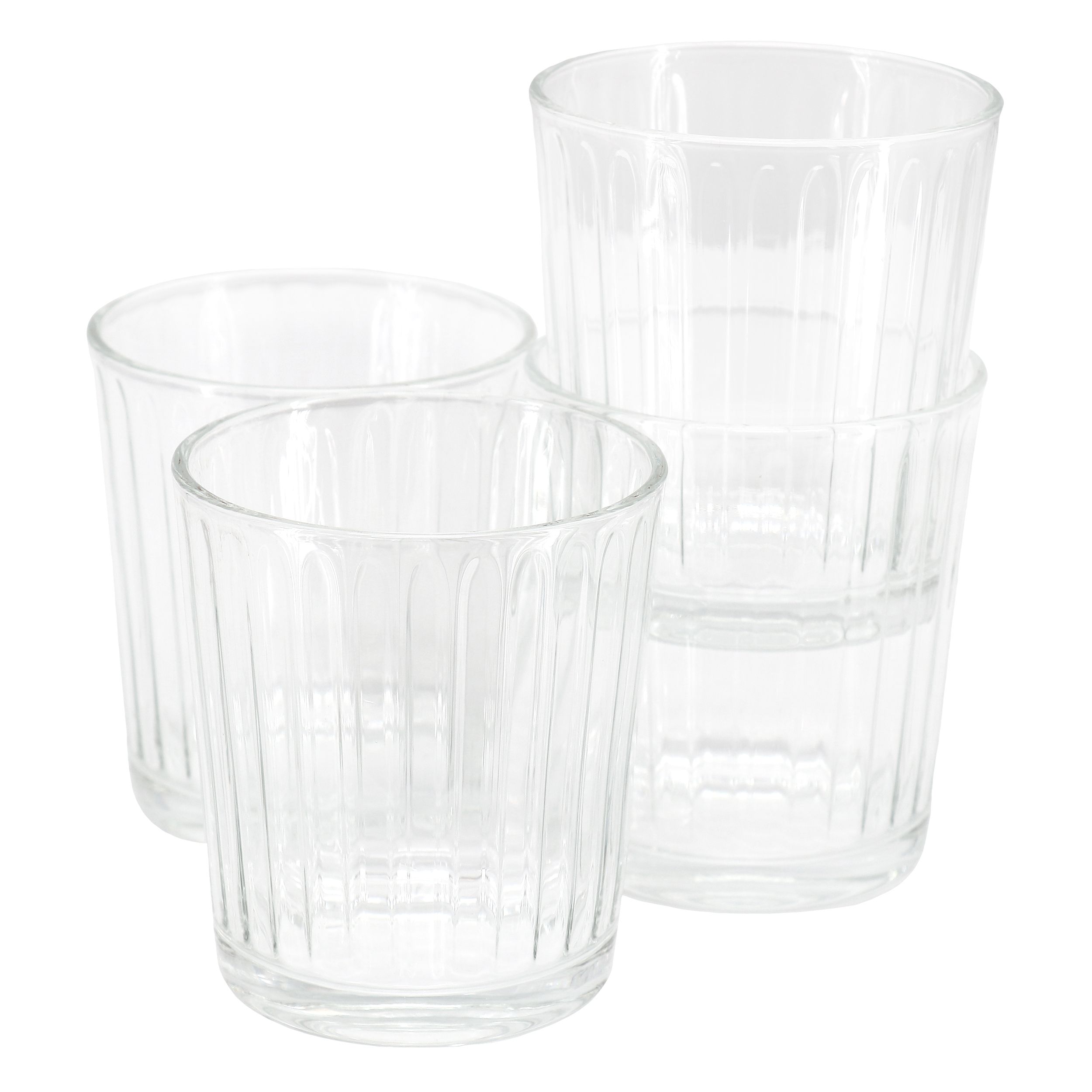 Manufacturer: Gibson Home UPC: 085081625137 Model Number: 141404.04 This Gibson Home Moonstone 4 Piece Double Old-Fashioned Glass Set is the perfect elegant addition to any home. The glass construction along with the delicate embossed interior adds a beautiful touch to any beverage. Invite over some friends and family and enjoy a nice ice cold drink. Your guests will admire the timeless yet modern beauty of your new glassware! Weight: 5.00