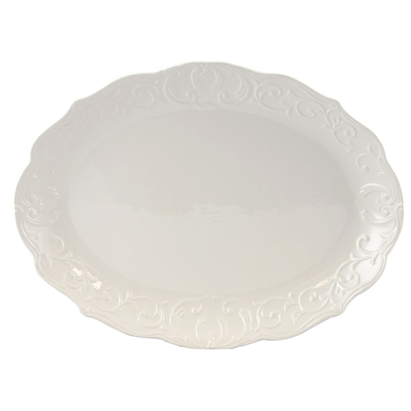 Manufacturer: GIBSON HOME UPC: 085081401755 Model Number: 116994.01 Serve festive meals with the beautifully embossed oval ceramic Durastone Oval platter. Perfect for holiday entertaining and family gatherings. Festive hand-finished serving platter features a nicely emboss edge design. The platter is dishwasher safe for easy cleaning. It is also oven and microwave safe for quick heating. Weight: 6.00