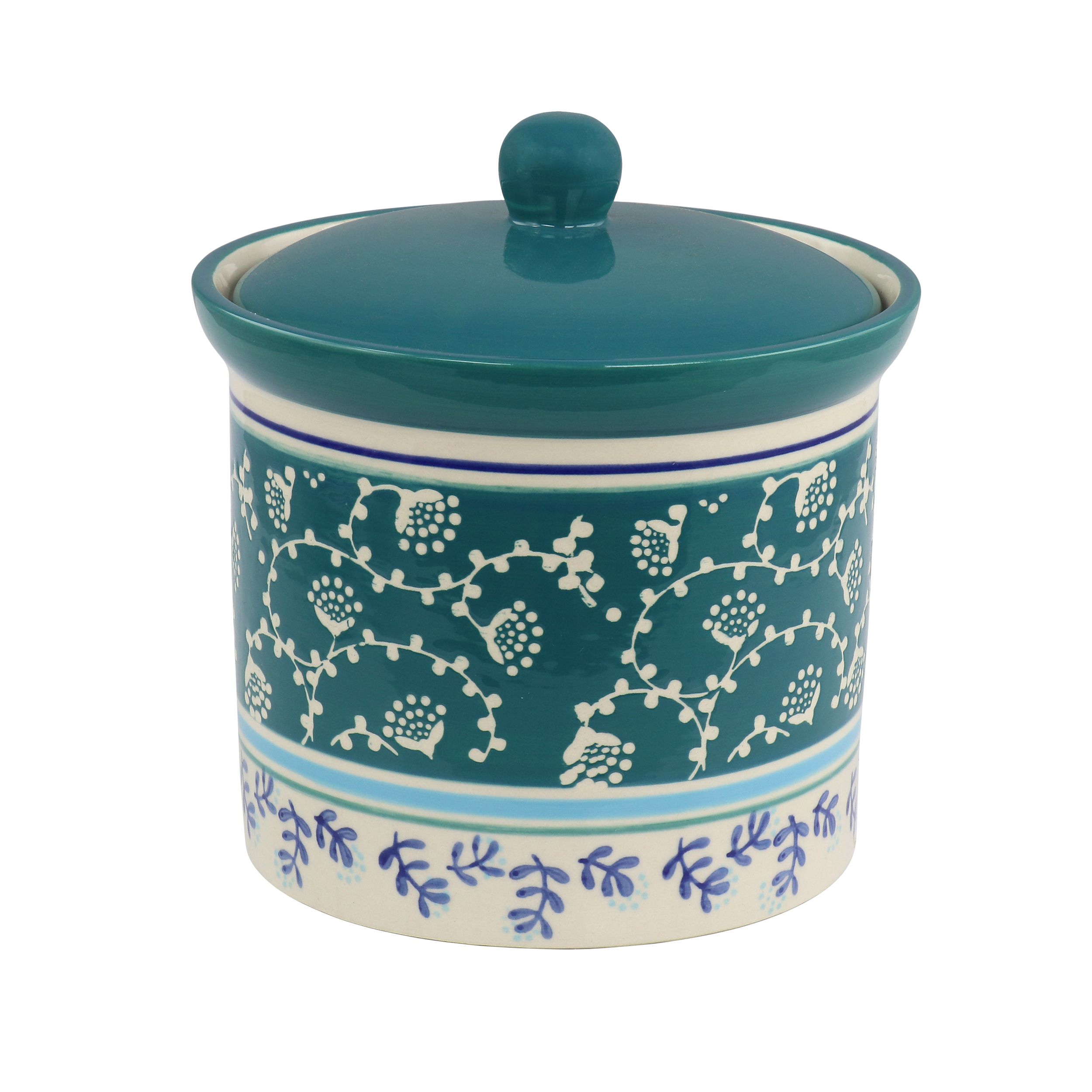 Manufacturer: Gibson Home UPC: 085081547255 Model Number: 131544.01 Store kitchen ingredients and more in this beautiful Gibson Home Village Vines 1.2 Quart Stoneware Canister With Airtight Lid. The rubber sealed airtight lid makes this canister great for storing dry ingredients like sugar, flour, and salt or keep your items fresh like coffee beans, nuts, and granola. The gorgeous floral vine pattern in lovely shades of blue looks great with any rustic or cottage themed decor. The stoneware construction is sturdy to keep items safe, but it is recommended to hand wash only. Weight: 4.50