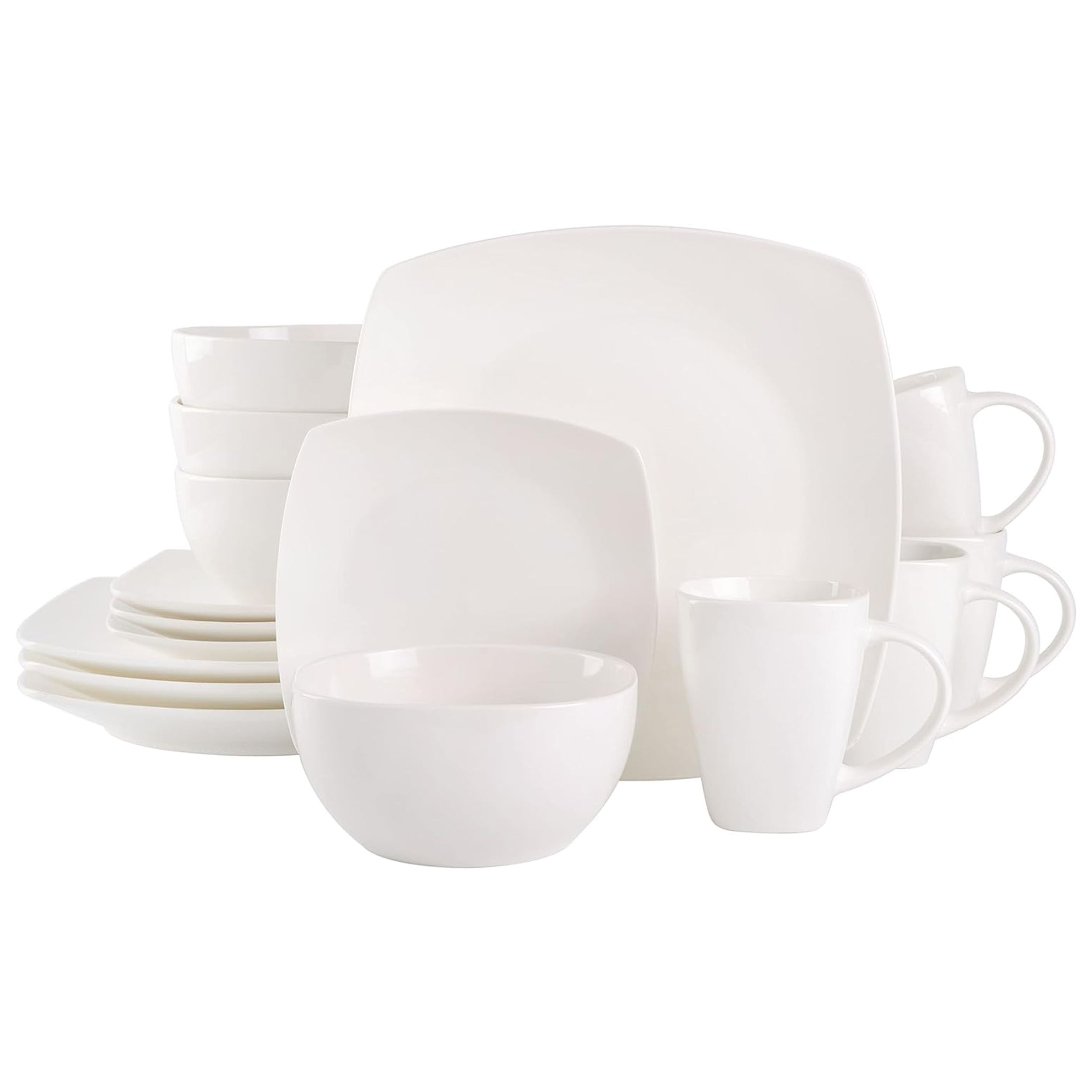 Gibson Soho Lounge 16 Piece Fine Ceramic Soft Square Stoneware Dinnerware Set in White