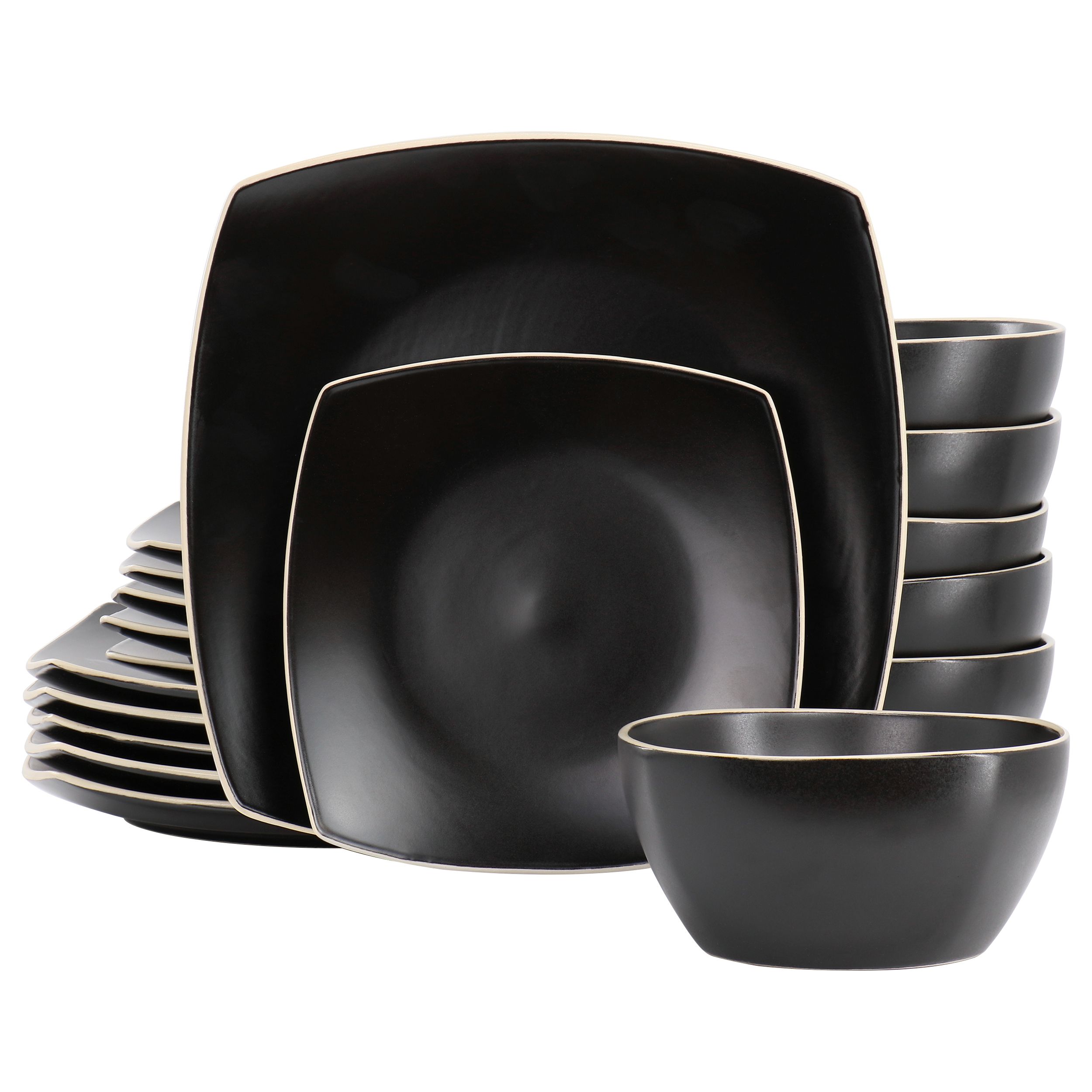 Gibson Soho Lounge 18 Piece Square Stoneware Dinnerware Set in Matte Black