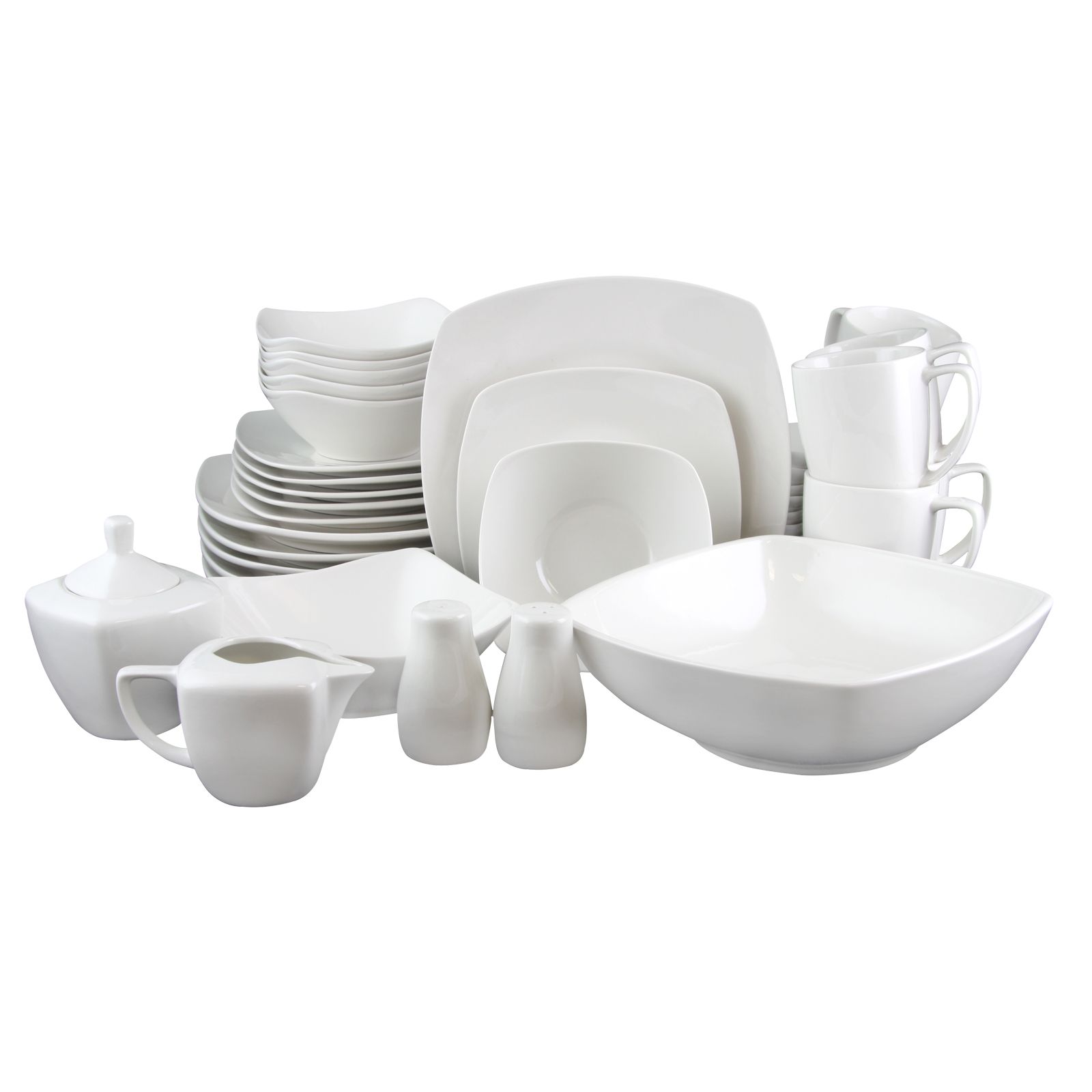 Manufacturer: GIBSON UPC: 085081341808 Model Number: 110999.39 A new expanded set from the Gibson Home Zen Buffetware Collection featuring a 39-piece Porcelain Dinnerware Set Service for 6 with Serveware. This best selling collection is renowned for its exquiste shape and generous surface for creating beautiful culinary displays on your table. The expanded set gives you matching serveware to perfectly coordinate your larger gatherings. The 39 piece includes: Six Dinner plates in at 10.75 inches, Six Dessert Plates in at 8.25 Inches, Six Soup Bowls in at 8 inches, Six Fruit bowls in at 6.5 inches, and Six Mugs in at 12oz. This beautiful elegant set also includes: One Oval Platter in at 13 inches, One Serve Bowl in at 10.75 inches, One Sugar jar with its lid, One Creamer jar, One sets of salt and pepper shaker and two 8 inch bowls. Weight: 22.00