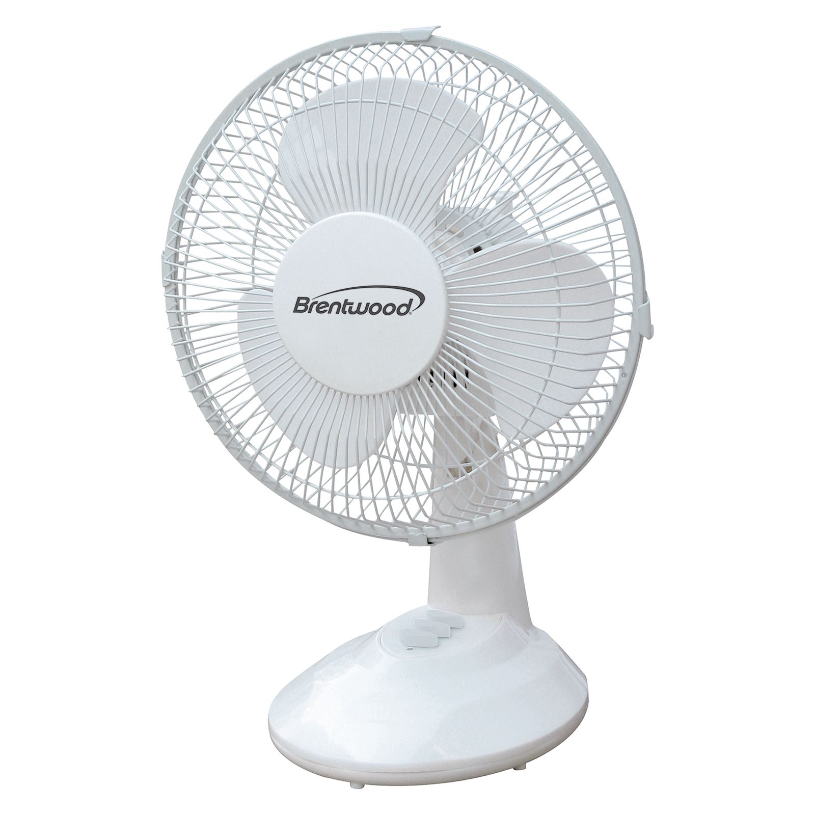 Stay cool with the 32w Brentwood F-9DW 3-Speed 9″” Oscillating Desk Fan. Direct airflow with wide oscillation and pivoting head. Features convenient built-in handle. Stylish clean white desk fan complements modern day home and office decor.