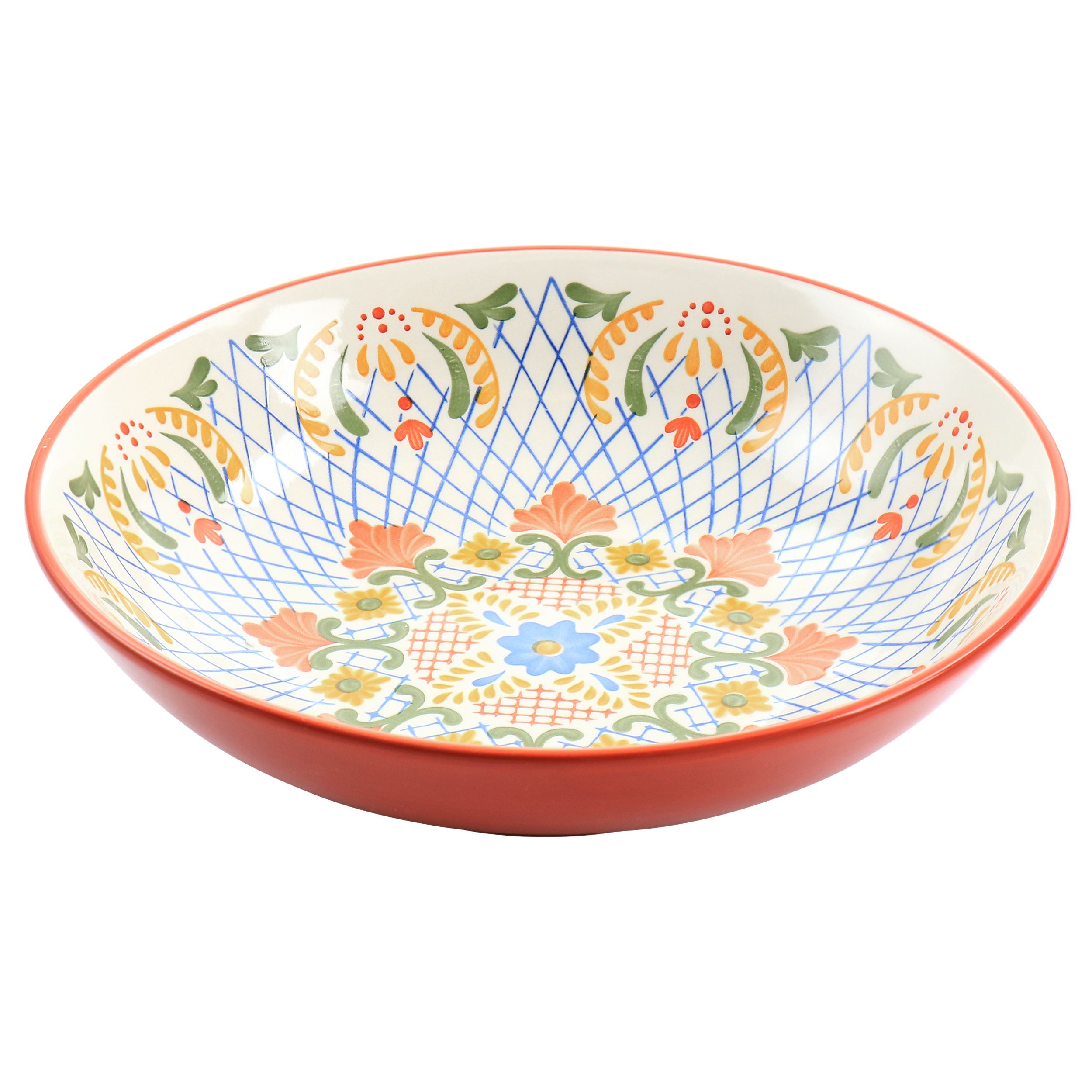 Manufacturer: Laurie Gates UPC: 085081541543 Model Number: 130973.01RR The Laurie Gates California Designs Tierra 10.5 Inch hand Painted Stoneware Pasta Bowl in Red is a comforting addition to any dinning table. This serving bowl features a hand painted flora design with in the bowl along with a red orange exterior. The stoneware body is ideal for keeping pasta dishes warm and heated. For fast and convenience use, the dinnerware is microwave safe and dishwasher safe. Serve fresh salads, tasty side dishes, or luxurious pasta recipes. Weight: 4.00