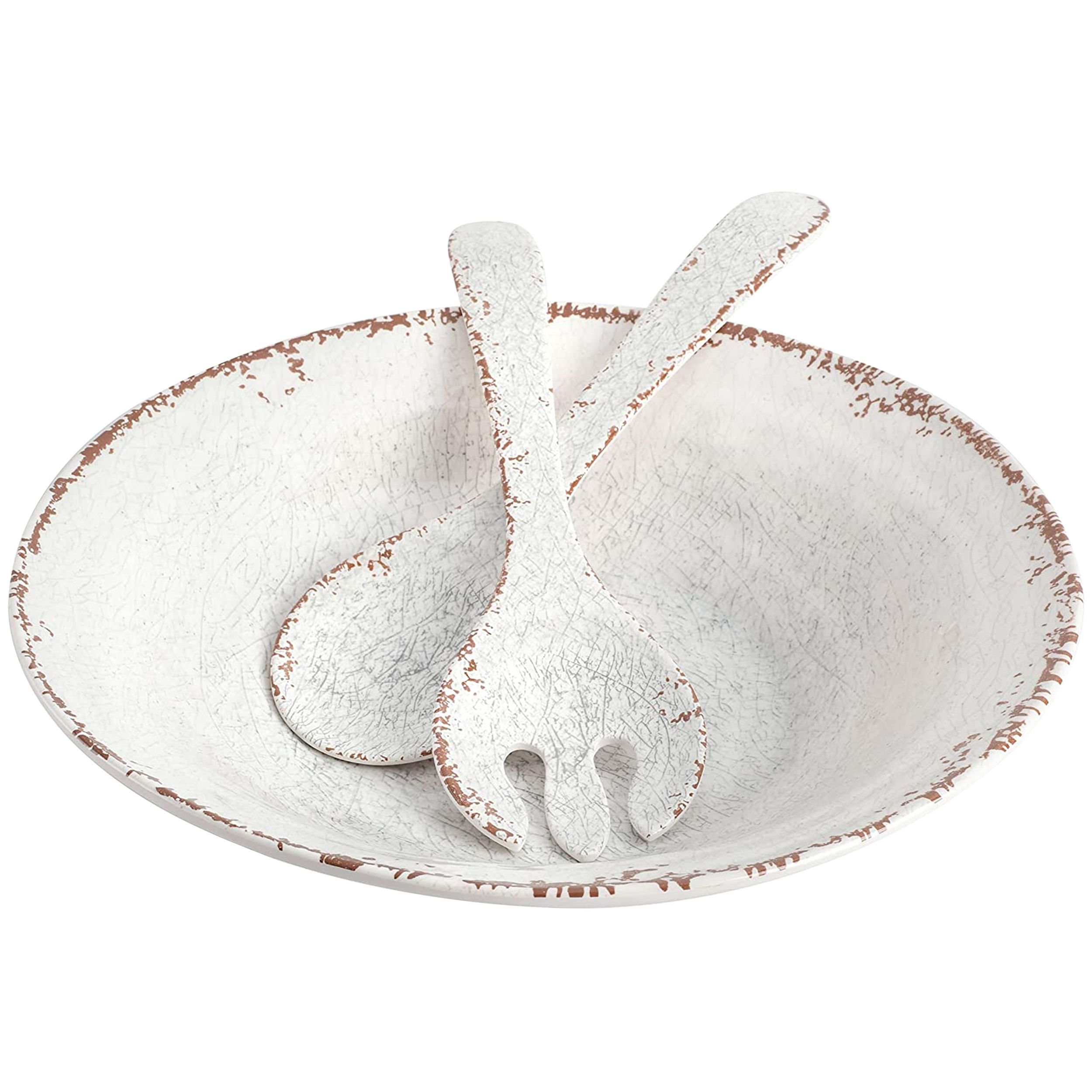 Give lunch some extra charm with the Laurie Gates Mauna 3 Piece Melamine Serving Bowl Set and its rustic styling. Featuring a crackled design, the serving pieces mimic a country side look with out the actual wear and tear. Made of shatter resistant melamine, the serveware set is perfect for outdoor gatherings and indoor parties. Includes a large 14 inch bowl and serving utensils to match. Enjoy bringing the set out to parks, backyards, or enjoy it at the dinner table.