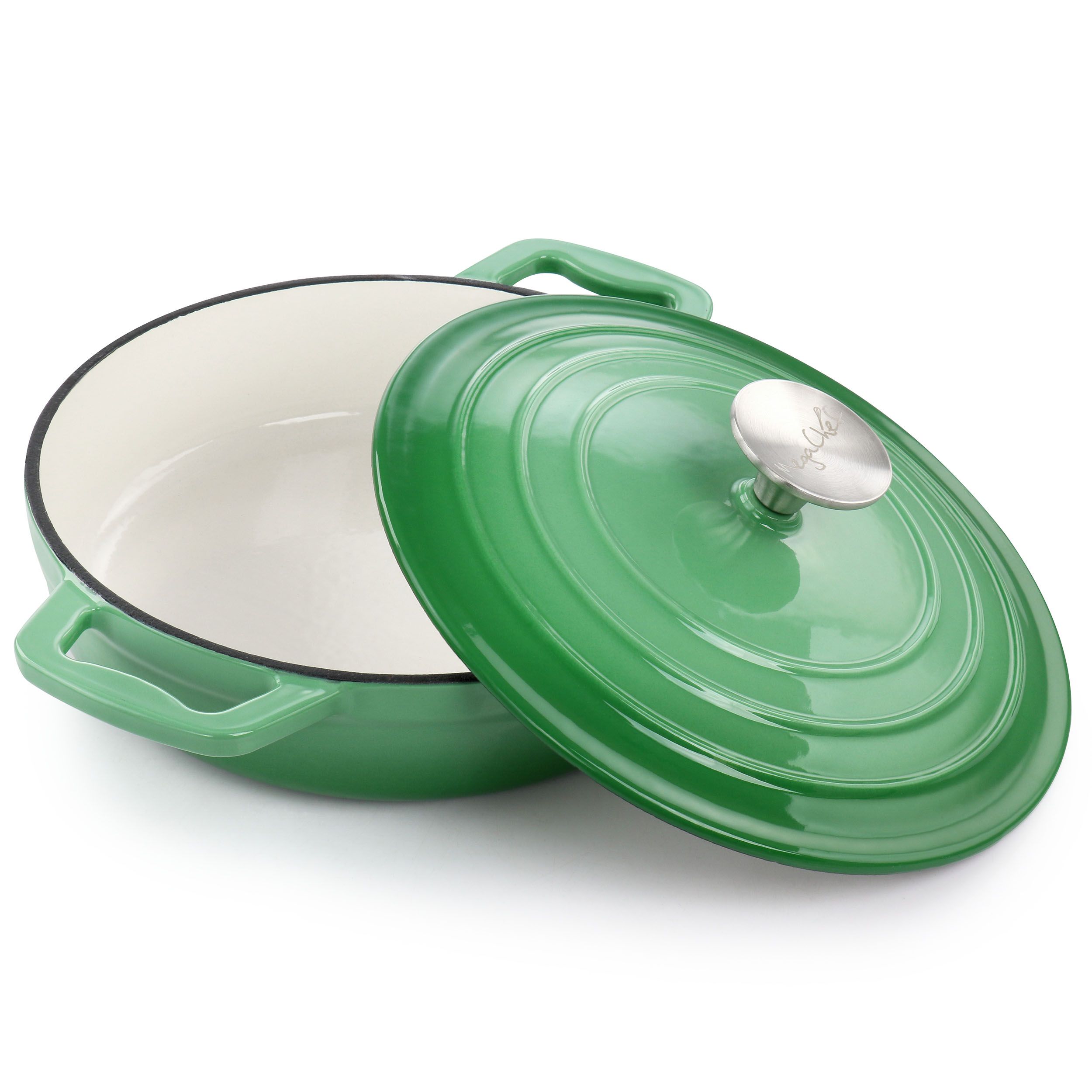 Manufacturer: MegaChef UPC: 840191206344 Model Number: MG-BRS22G The MegaChef Round Enameled Cast Iron Casserole in Green, provides the ideal size and shape for a multitude of dishes. Its cast iron make allows for even and long lasting heat distribution for the evening supper. With an round shape, the braiser pan can accommodate larger cuts of meat; perfectly suitable for grand dinner parties. Cut down in oils and fats with the non-stick enamel coating, creating healthier daily meals! Create an array of dishes ranging from seasonal delicacies to common year round morsels for all to enjoy! Weight: 10.00