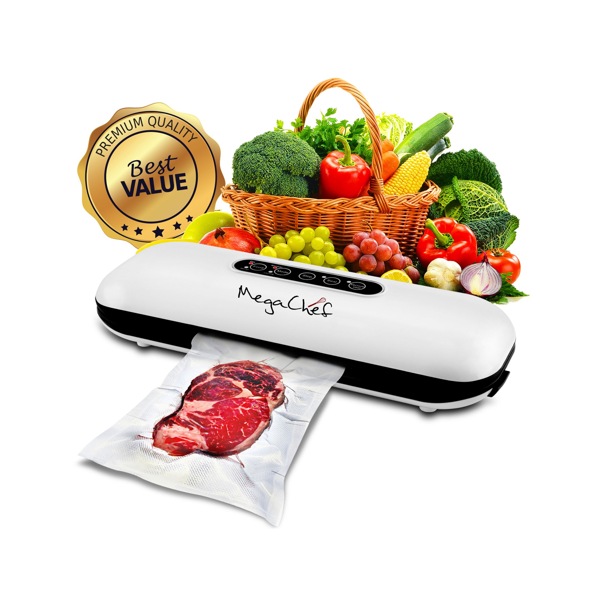 Manufacturer: Megachef UPC: 672975048891 Model Number: MCVS100 The MegaChef Home Vacuum Sealer and Food Preserver with Extra Bags is a must have for any household. This vacuum sealer keeps food fresh up to 5x longer, preserves freshness, taste, and aids in preventing freezer-burn. Make cooking experience and meal preparation easier, more economical and faster. The dry and moist options provide your food with best possible preservation based on the different food types and storage requirements. Includes 10 large sized individual bags and a 10 Foot roll for larger food items. Food Bags are BPA Free, so you never have to worry about storing your favorite foods. This Megachef compact food saver sealer has a small and compact design to easily store when not in use. Space saving size makes it perfect for dorm rooms, boats, RVs, or motor homes where space might be limited. Weight: 4.00