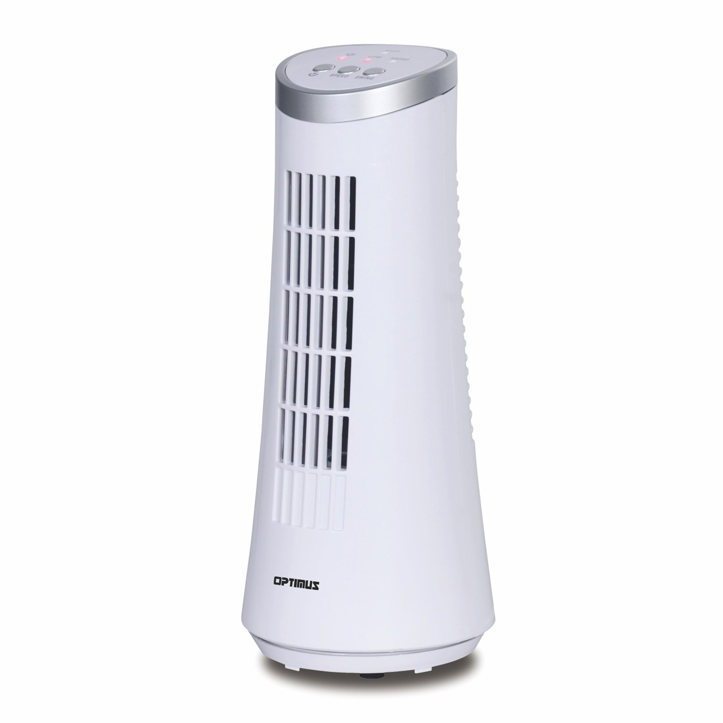 Cool off at your desk with the 12-in Desktop Ultraslim Oscillating Tower Fan from Optimus, in white. This desktop fan features 75 degree oscillation to circulate cool are within your area. The convenient handle and portable design allows you to easily move this tabletop fan around the home or office, where you desire the breeze the most.