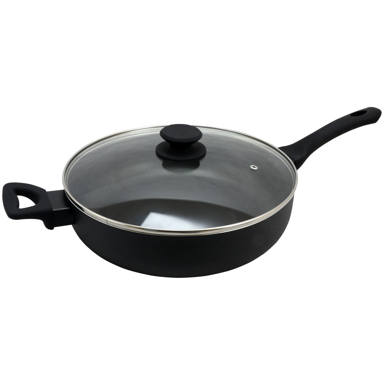 Oster Ashford 5 Quart Aluminum Sauté Pan with Tempered Glass Lid in Black