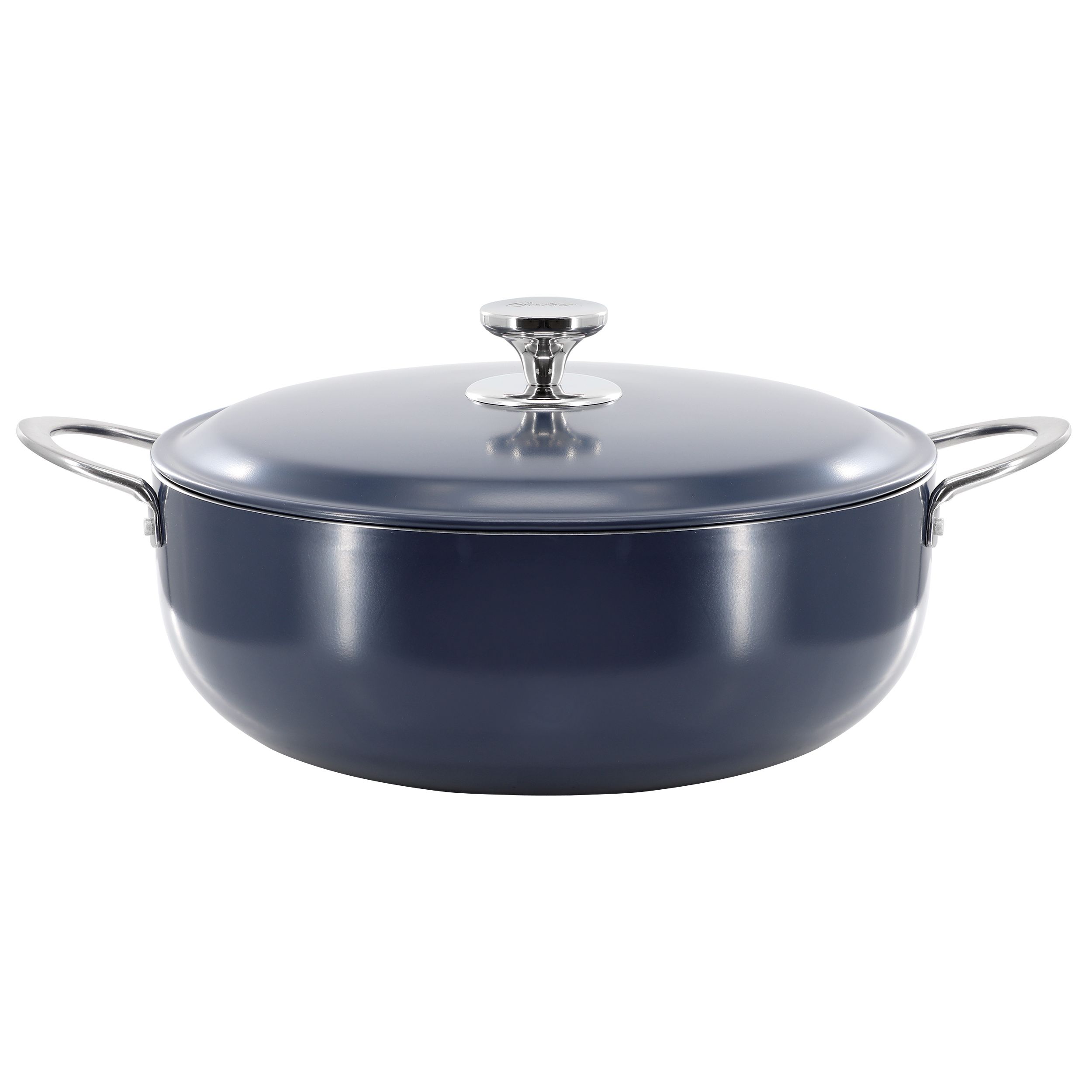 Oster Cartagena 9.3 Quart Nonstick Aluminum Caldero with Lid in Dark Blue