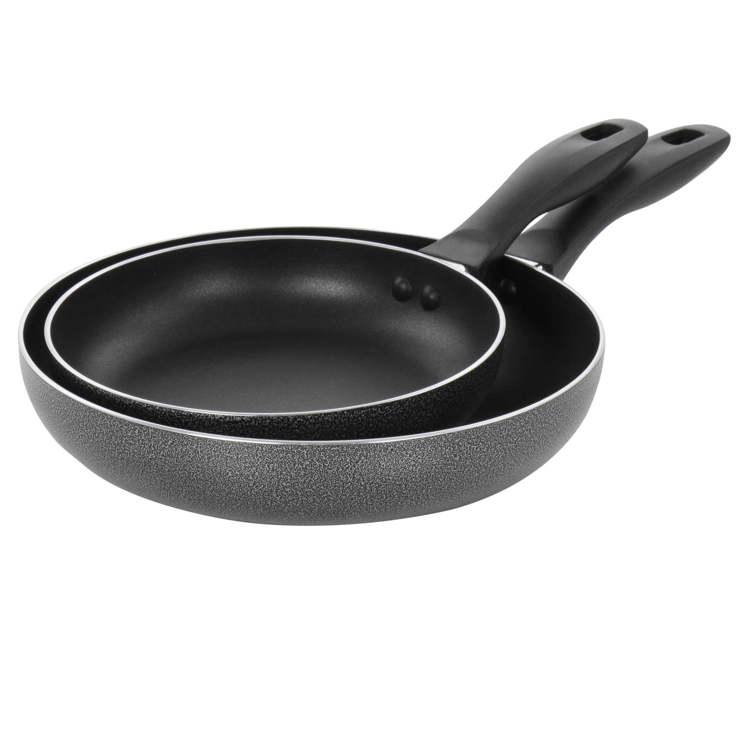 TheOster Clairborne 2 Piece Nonstick Aluminum Frying Pan Set in Charcoal Grey will create a sleek and dynamic look for your kitchen. This beautiful and long-lasting skillet set will allow you to cook wonderful meals for family or guests, making it ideal for many dinner gatherings and events to come. Its nonstick interior makes cooking and cleaning easy while also allowing you to make healthier dishes and skip using any oils or fats. The Clairborne will add a touch of elegance to your everyday meal prep routine.