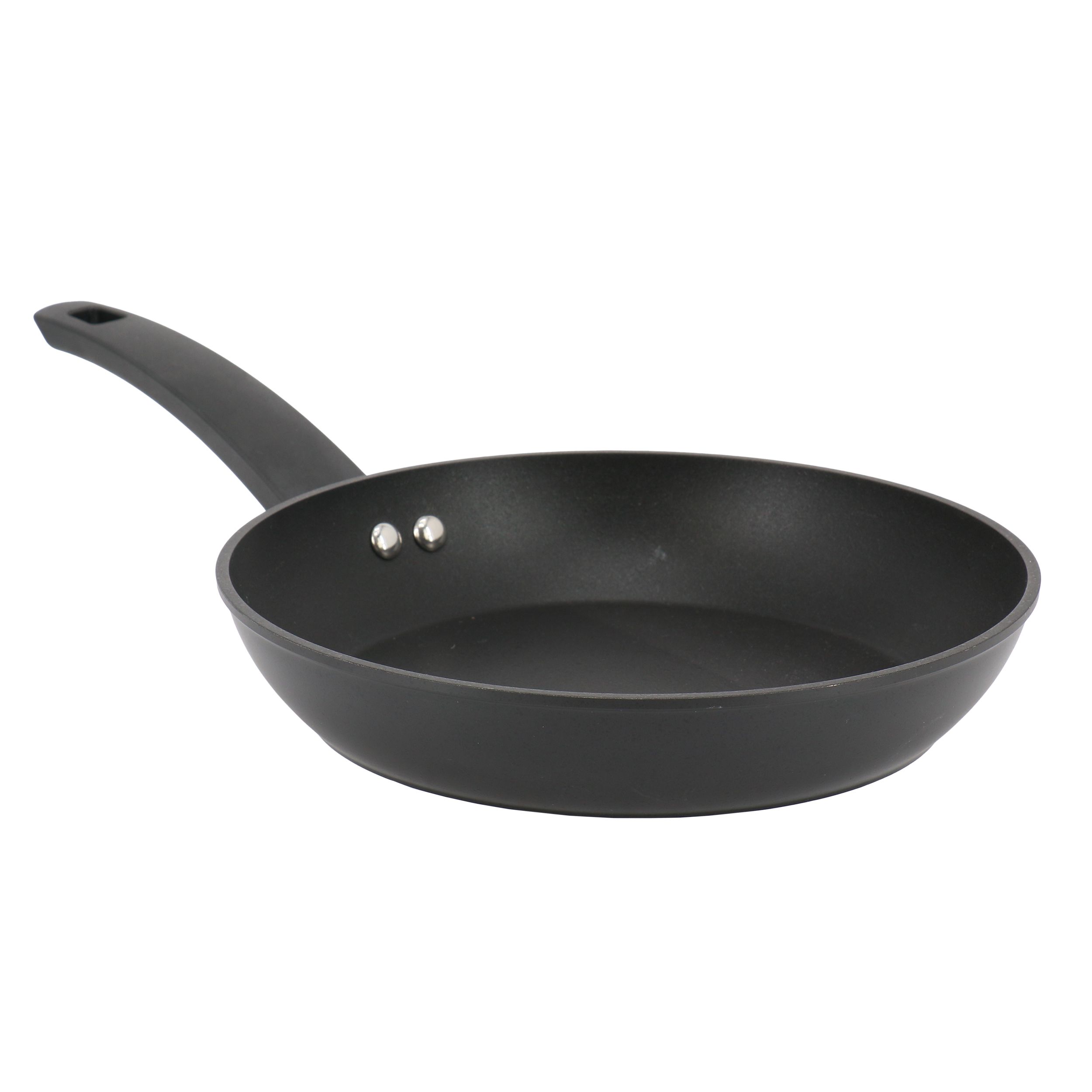 Fry, flip, and sautee all your favorites in this Oster Connelly 9.5 Inch Nonstick Aluminum Frying Pan. A sleek aluminum construction heats up fast and evenly while the bakelite handle stays cool to the touch when you cook. A hanging hole on the handle makes for easy storage when you’re finished. While dishwasher safe, hand wash is recommended to make sure the nonstick coating lasts. Your favorite steaks, stir frys, fried eggs, and so much more are just a recipe away with this frying pan.