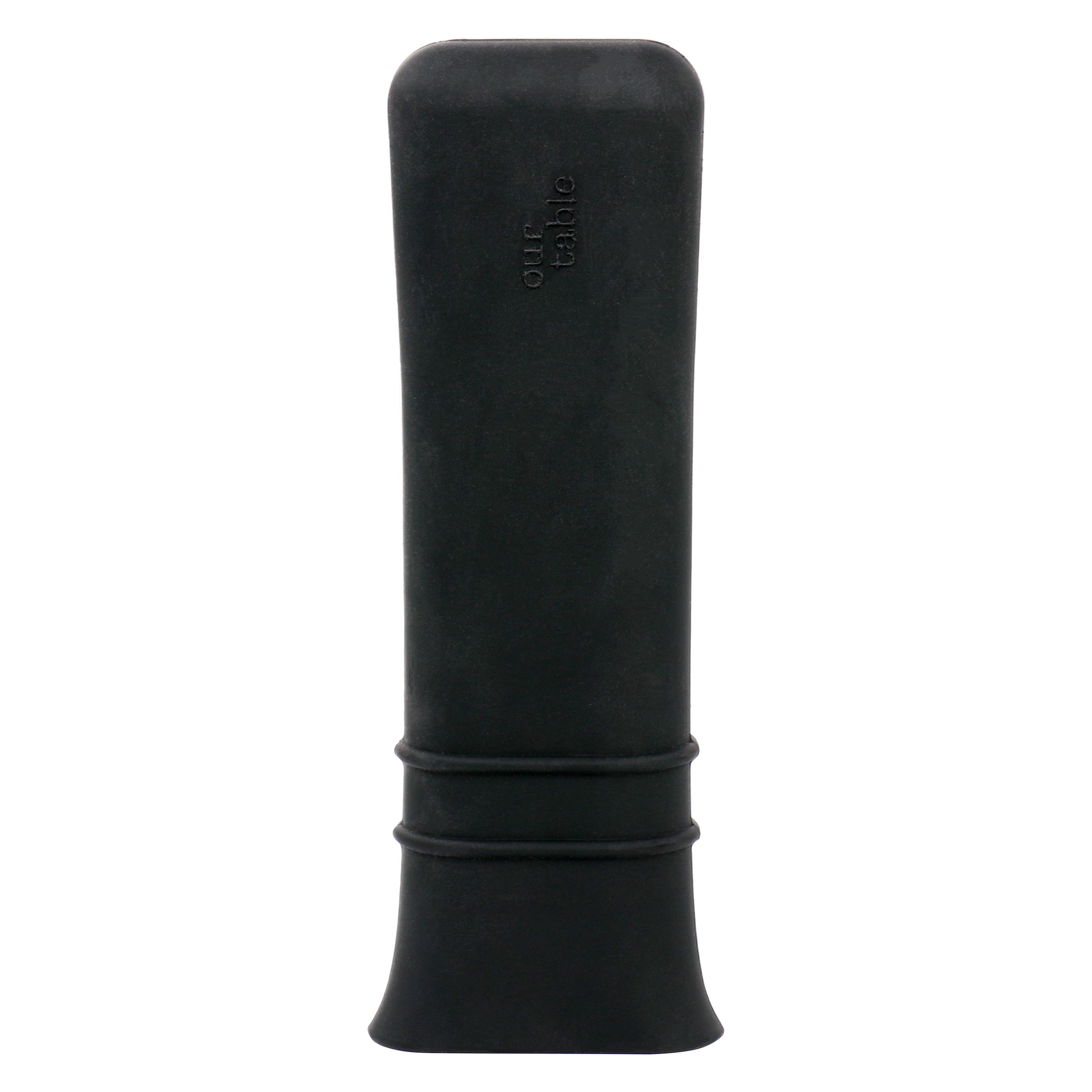 Manufacturer: Our Table UPC: 444800488529 Model Number: 97250.01 Keep your hands protected from hod handles with the Our Table Silicone Pot Handle Holder in Black. This silicone cover lets the user have a hold over heated cookware up to 400 degrees F (204 C). The silicone body doubles as a general grip, with its’ easy to grab texture. The length is ideal for pots and pans 10 inches and up. Weight: 2.00