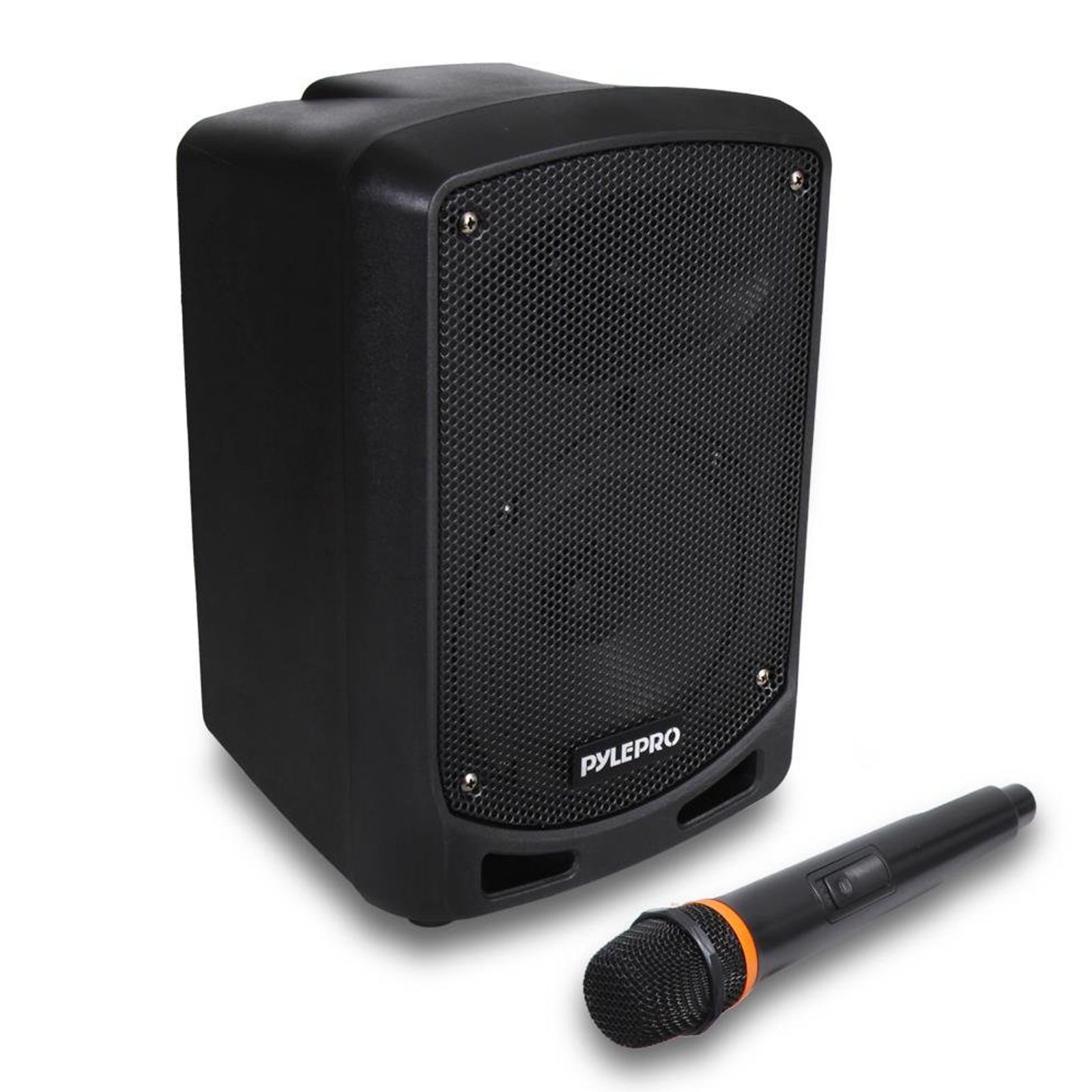Manufacturer: PYLE UPC: 842893101255 Model Number: PSBT65A COMPACT AND POWERFUL: This Compact and High Powered 600 Watt Karaoke PA Sound System by Pyle is equipped with 6.5 inch Subwoofer and 3” Treble Speaker for Full Range Stereo Sound Reproduction. Perfect for patio party, crowd control. WIRELESS AUDIO STREAMING: This Indoor / Outdoor Speaker System has a built-in Bluetooth with Wireless Range of up to 33 + Ft so you can play your favorite song or music from all of your favorite devices like iPhone, Android mobile phone, iPad, Tablet, PC AUDIO CONFIGURATION AND RECORDING: This PA Amplifier Speaker and Mic Set can Record Audio as streamed through the speaker or via the included external microphone which is perfect for rehearsing or singing practice. It also has an echo, Bass, and Treble Controls for Dj sounds. SUPPORTS USB / SD CARD: The device is also equipped with USB / SD Card Readers and AUX 3.5mm Input cable for connecting external devices. Compatible with MP3 digital audio files. RECHARGEABLE BATTERY: This box type battery powered heavy duty portable PA Loud speaker has a built in rechargeable battery which makes it convenient and portable. It also has a 35mm Stand Mount for easy mounting. Ideal for personal or commercial use. Weight: 10.00