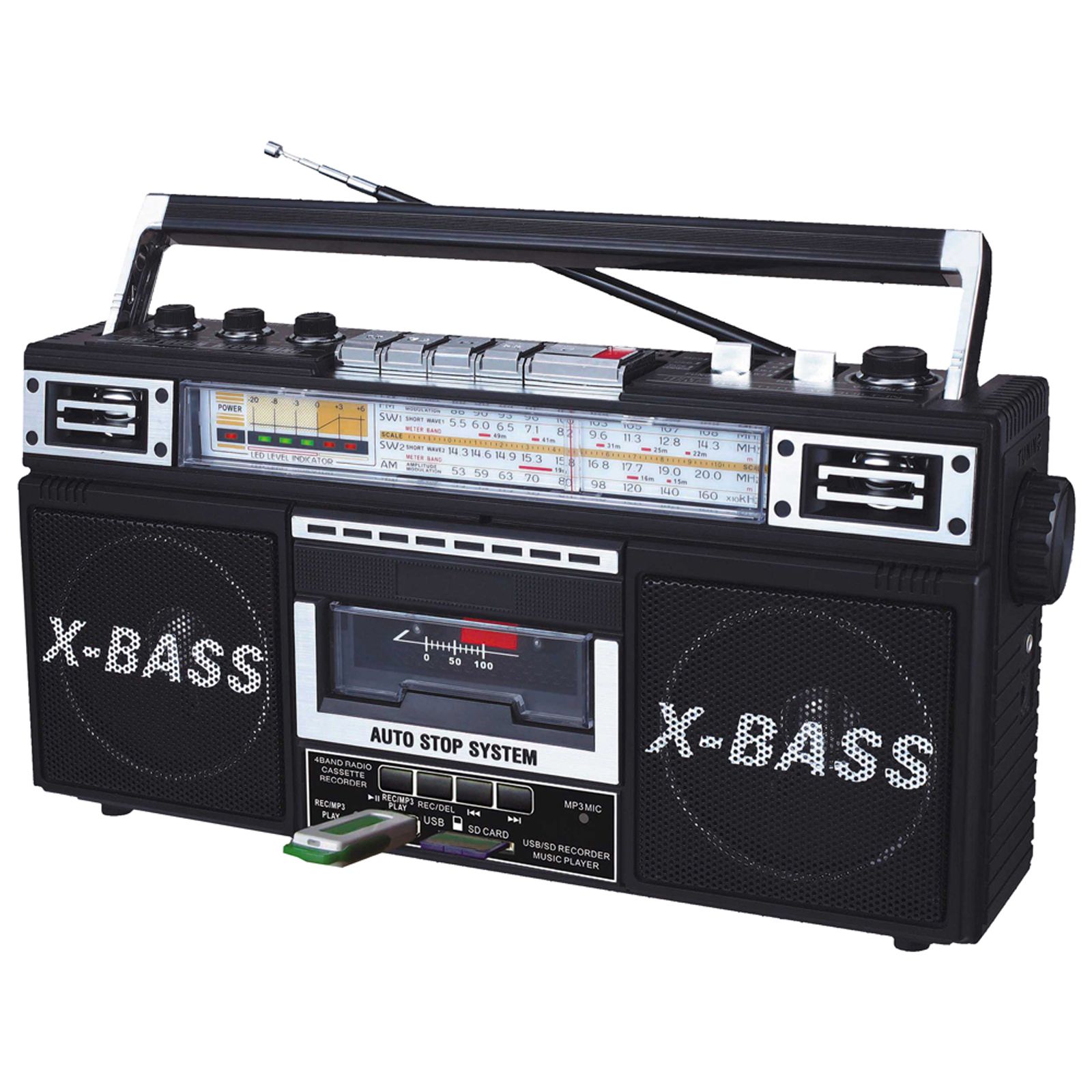 QFX AM/FM/SW1-SW2 4 Band Radio and Cassette to MP3 Converter, and Recorder with USB/SD/MP3 Player