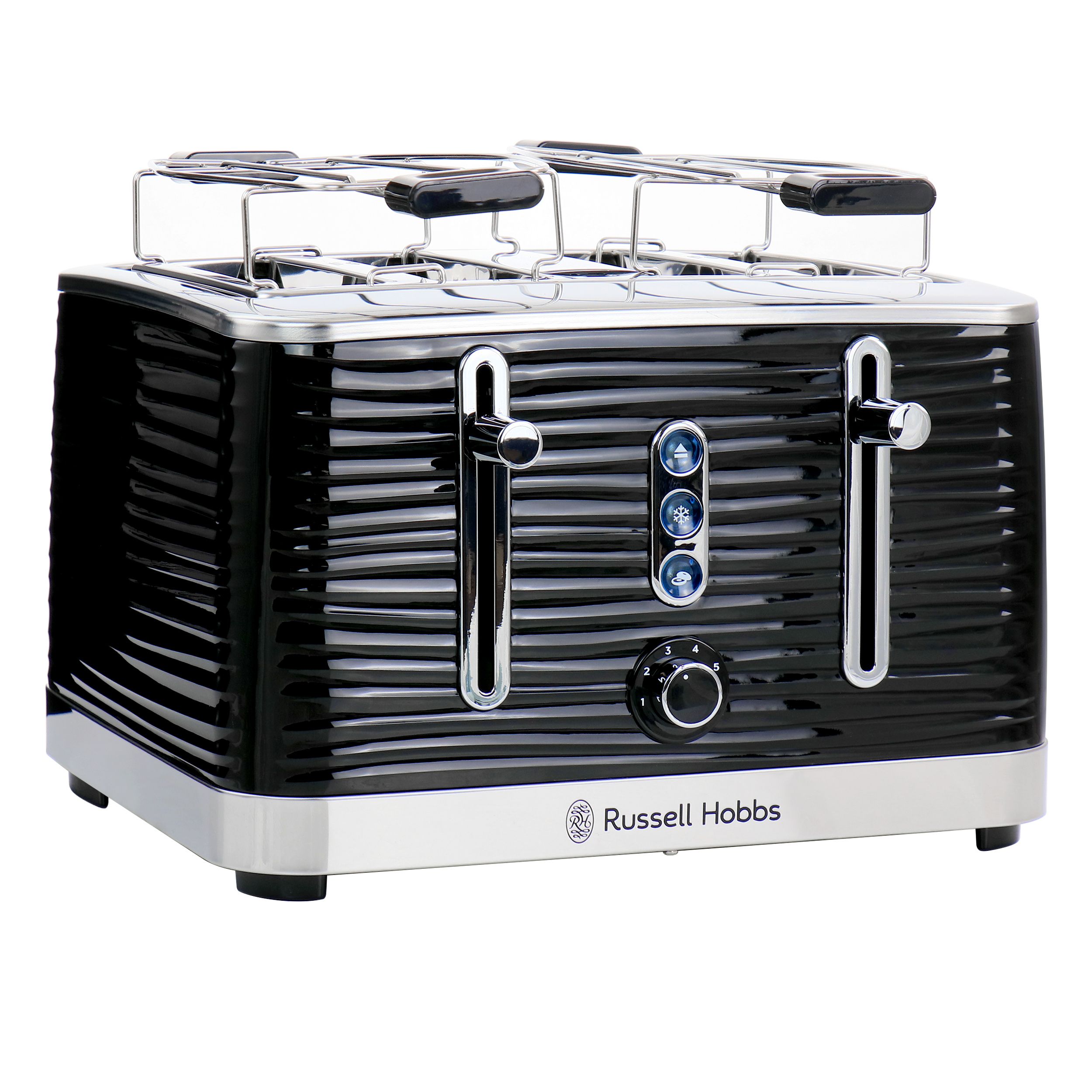 From the heart of England to the heart of your home, the Russell Hobbs Coventry 4-Slice Toaster brings premium aesthetics to your kitchen. The variable browning control ranges from 1 (light) to 6 (dark) to satisfy all preferences. Choose the Bagel function for a perfectly toasted cut side with a warmed bottom side, or the Frozen setting for fresh-like results. This toaster comes with a removable warming rack that quickly heats buns, pastries, and rolls. Plus, the removable crumb tray ensures easy cleanup.