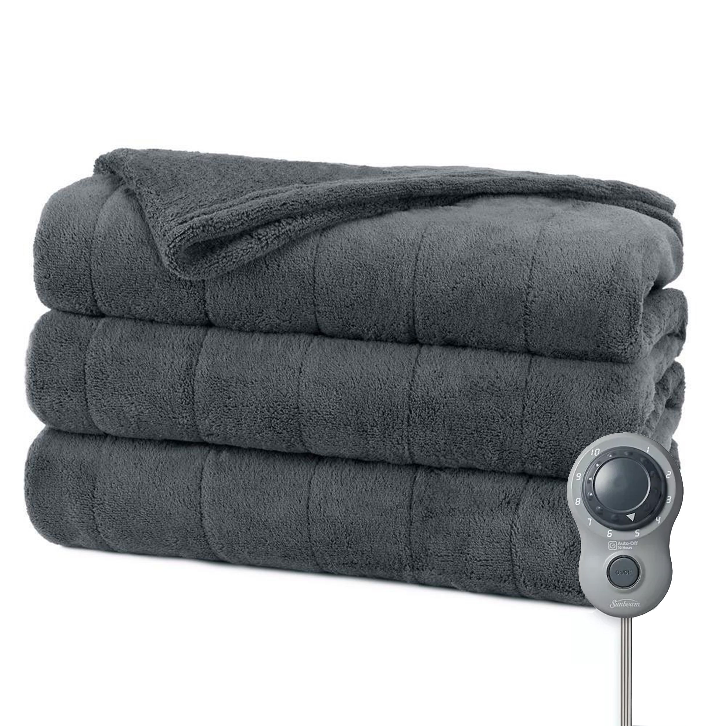 Sunbeam Twin Size Electric Luxurious Velvet Heated Blanket in Slate with Dial Control